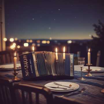 electronic nu tango, electronic, layered with rich textures and syncopated rhythms, tango, moody and atmospheric with a blend of traditional accordion and modern electronic beats, the intro features a solo accordion melody that weaves longing and intimacy, the rhythm builds into a seductive electronic pulse, accordion