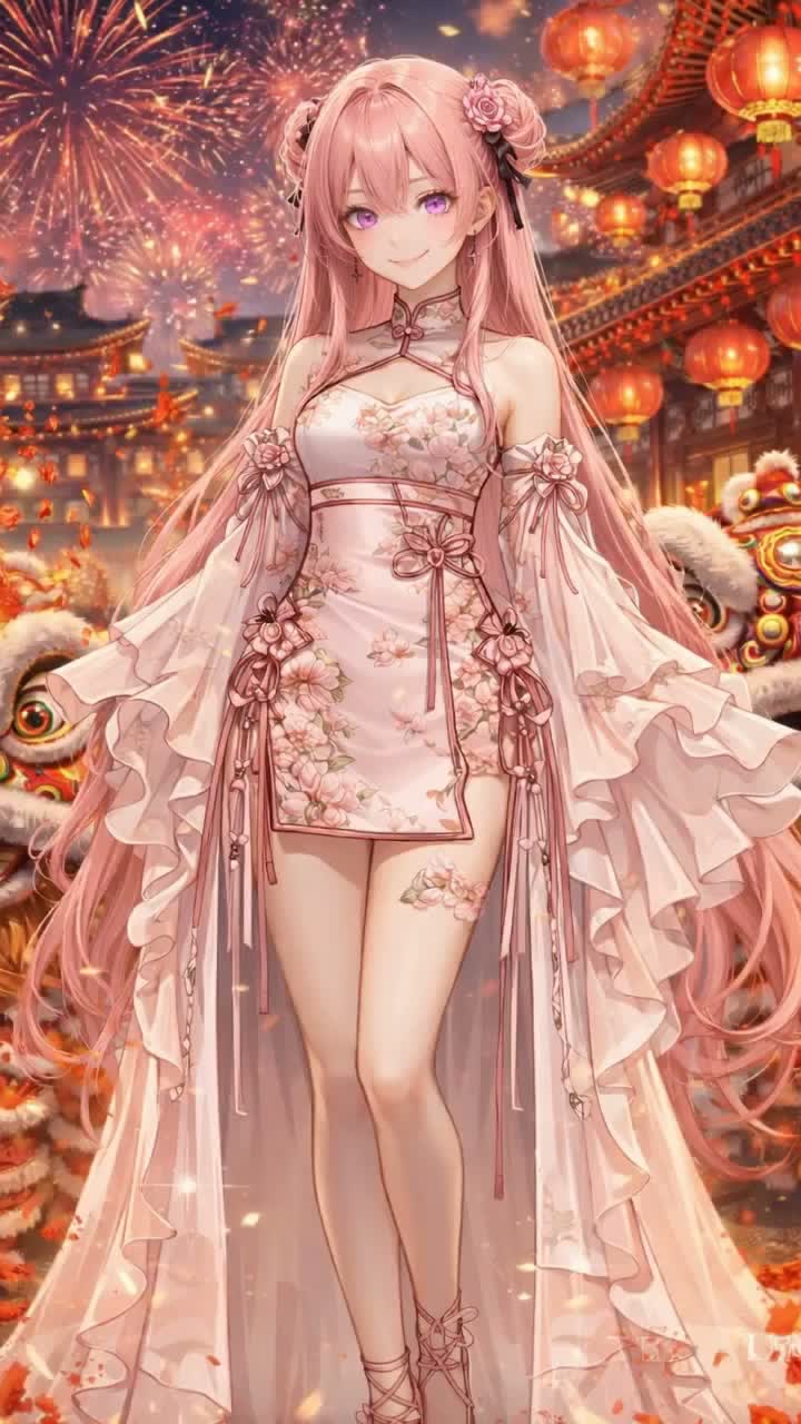 “Traditional Chinese New Year festival music, bright and joyful, featuring guzheng, erhu, dizi, loud drums and gongs, fast tempo, празднич parade atmosphere, energetic and celebratory”