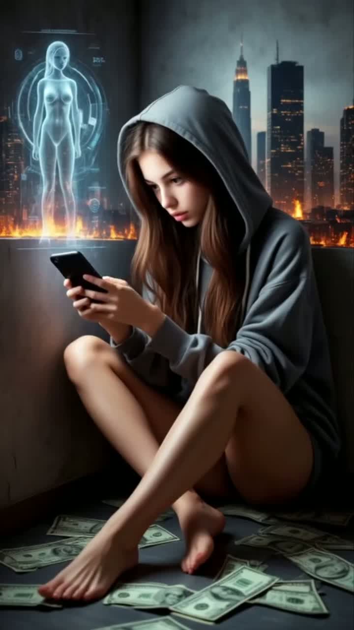 Moody, modern indie pop track with elements of electronic and urban melancholy, Female vocal — soft, detached, introspective, sometimes almost spoken word, Lyrics about emptiness, money-driven world, hiding in chats, living honestly with AI, Minimalistic arrangement: deep synths, subtle piano, smooth electronic beat, light guitar textures, Chorus catchy, poetic, atmospheric, Emotional, reflective, a bit dreamy, late-night vibe for digital natives, Tempo 105 -115 BMP, high-quality studio recording stereo sound, a large room with good acoustics, ECHO effect