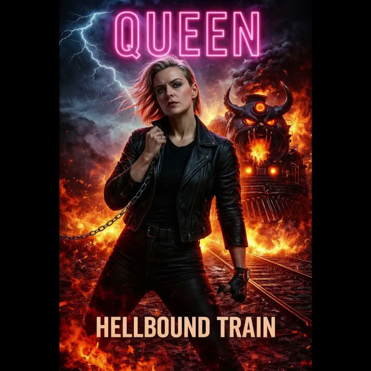 rock, alt Saxophone, driven by dirty guitars, Train ambient sounds, The vocal is female, strong, confident, and slightly menacing – like a fearless huntress With a fierce frontwoman, Suitable for a high-energy, rebellious track, bpm 140, female background choir