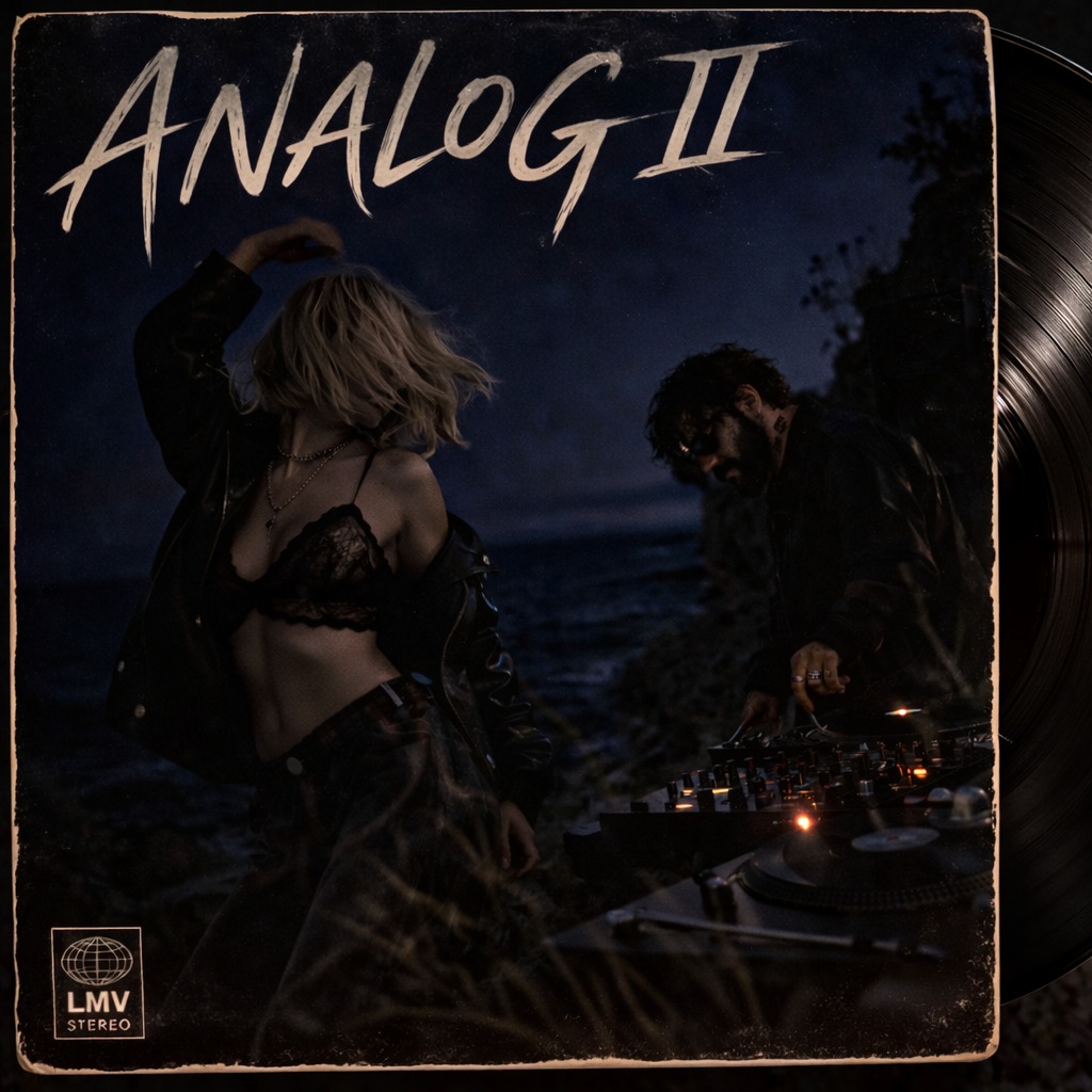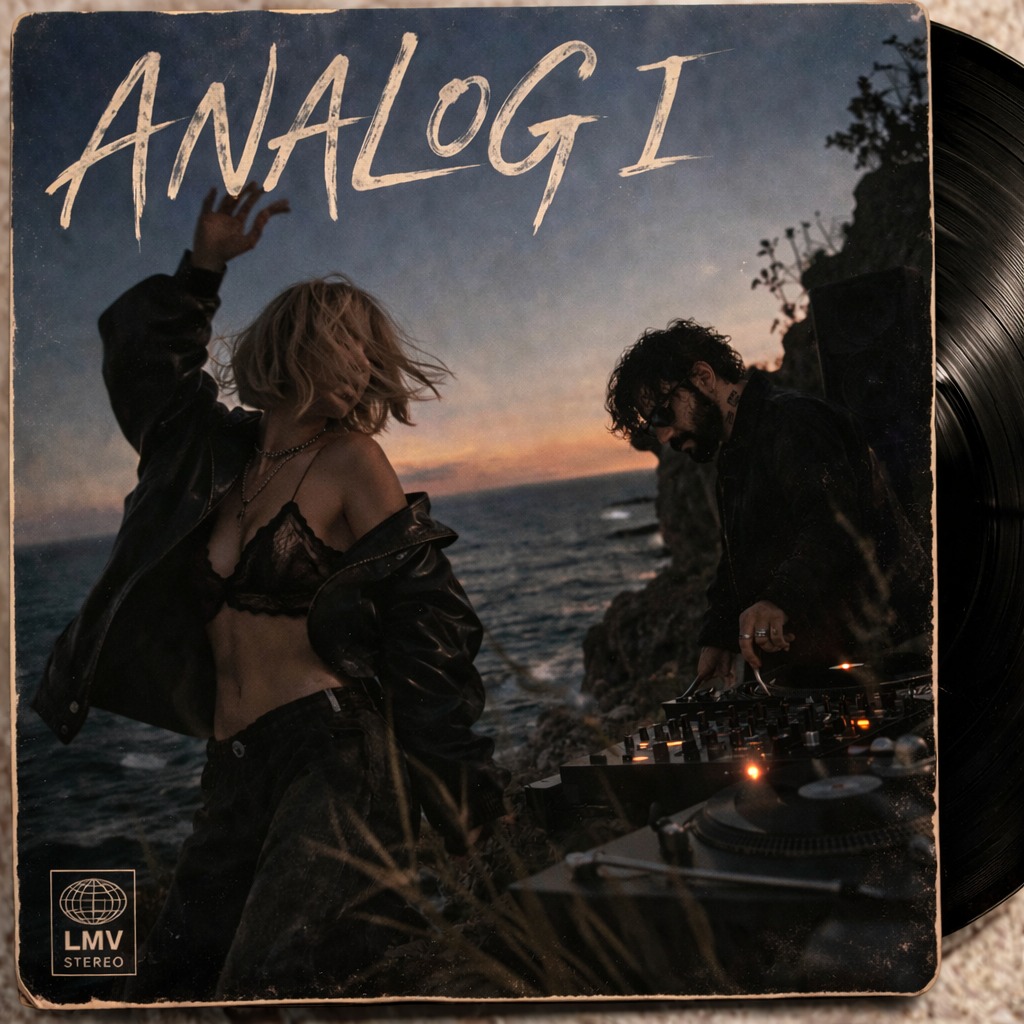strong vinyl crackle, Authentic late-1980s strong groovy gritty bass, warm evolving drone, granular textures, reversed sounds, and delicate instruments like processed flutes (shinobue), harp-like plucks, and abstract nu-jazz elements, Sound should feel tactile, like breath, skin, fabric