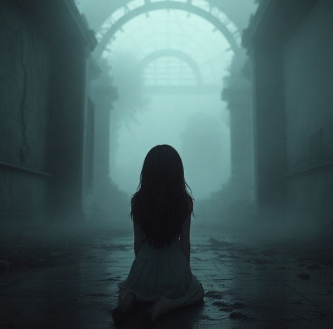 ambient, synth, creepy, melodic, muffled girl laughter background FX