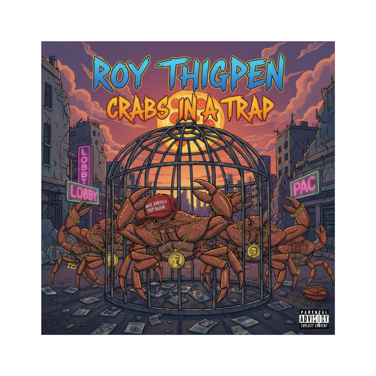 A hard-hitting Political Conscious Hip-Hop track layered over a driving Southern Rock foundation, The rhythm is a heavy 4/4 fusion of Hip-Hop kick/snare and a shuffling, driving rock drumbeat with a Gospel-influenced hand-clap on the 2 and 4, Features prominent Male Rapper vocals, a screaming Lead Southern Rock Guitar, and a powerful, harmonizing Gospel Choir that takes the lead on the Chorus, The mood is confrontational, critical, and full of righteous anger