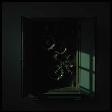 This dark EDM track fuses glitch-industrial beats â 128 BPM: metallic percussion, fractured synth lines, and distorted bass pulse in heady syncopation, Looped, uneasy motifs weave through whirring effects and warped textures, building a hypnotic, off-kilter groove, Vocals drift in broken, poetic fragments, processed with granular delay and bit-crushed reverb, amplifying the sense of disorientation as tension waxes and wanes over a crooked carnival soundscape