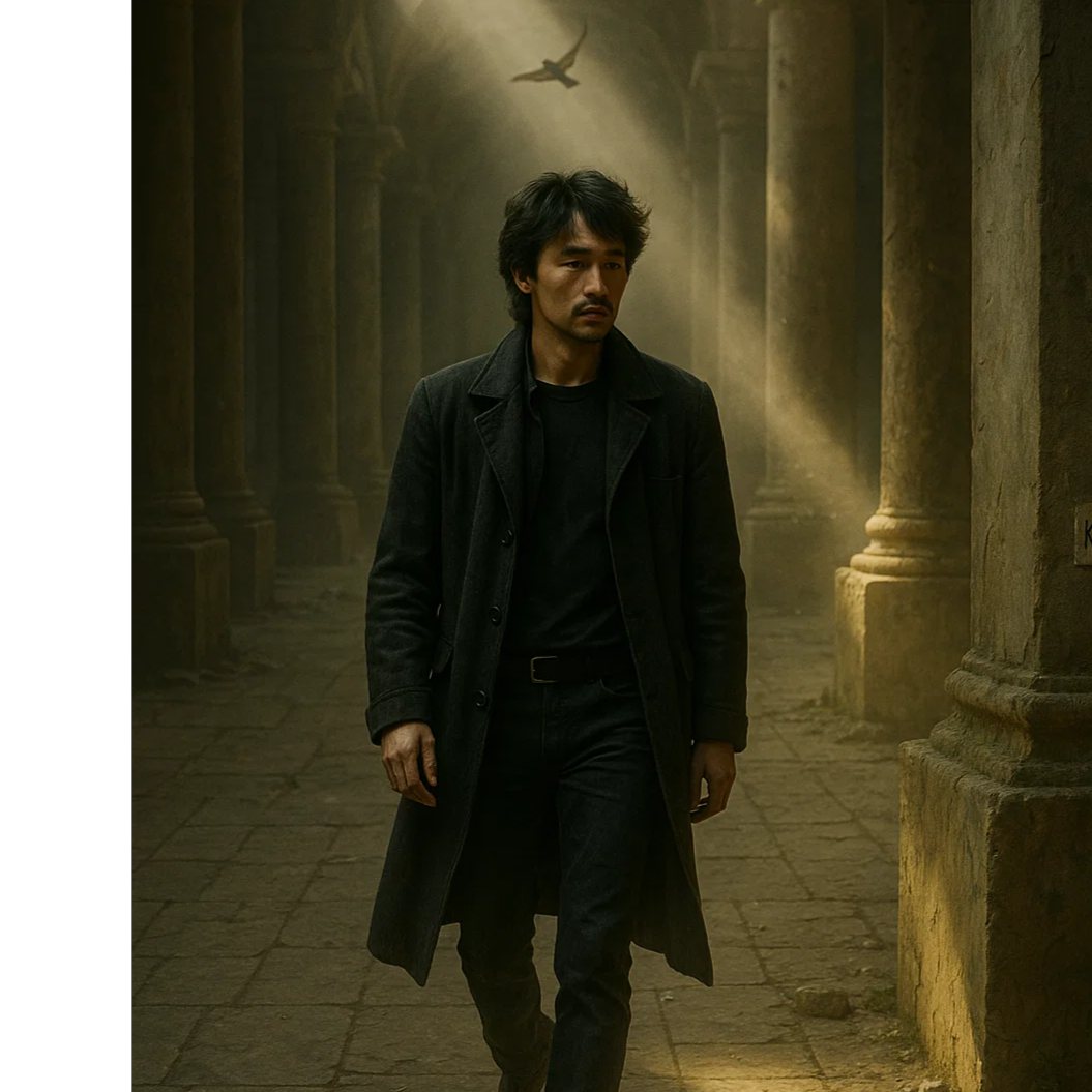 Lo-fi analog rock at 135 BPM with cold post-Soviet tone, Minimalist drum grooves and dry snares drive steady, metronomic rhythms, Melodies revolve around minor-key progressions, often A minor or E minor, with repetitive structures that build quiet intensity, Rhythm guitar is clean or lightly overdriven, mixed forward with reverb and slight chorus effect, Basslines are simple but melodic, locked tightly to the kick, Vocals are deep male, half-sung/half-spoken in a gritty tone, delivered with calm urgency and emotional restraint, Themes reflect struggle, alienation, and inner resistance, Choruses emphasize unison delivery, rarely harmonized, No vocal layering, Synths used sparingly—when present, they are analog, ambient, and cold, The overall mix is raw, dry, and spacious, Guitar solos are short, melodic, and echo-drenched, Ideal for nighttime driving, introspective walking, or minimalist visual scoring, Unfiltered, honest, and built on limitation, [V, Tsoi, s Vocals Style]