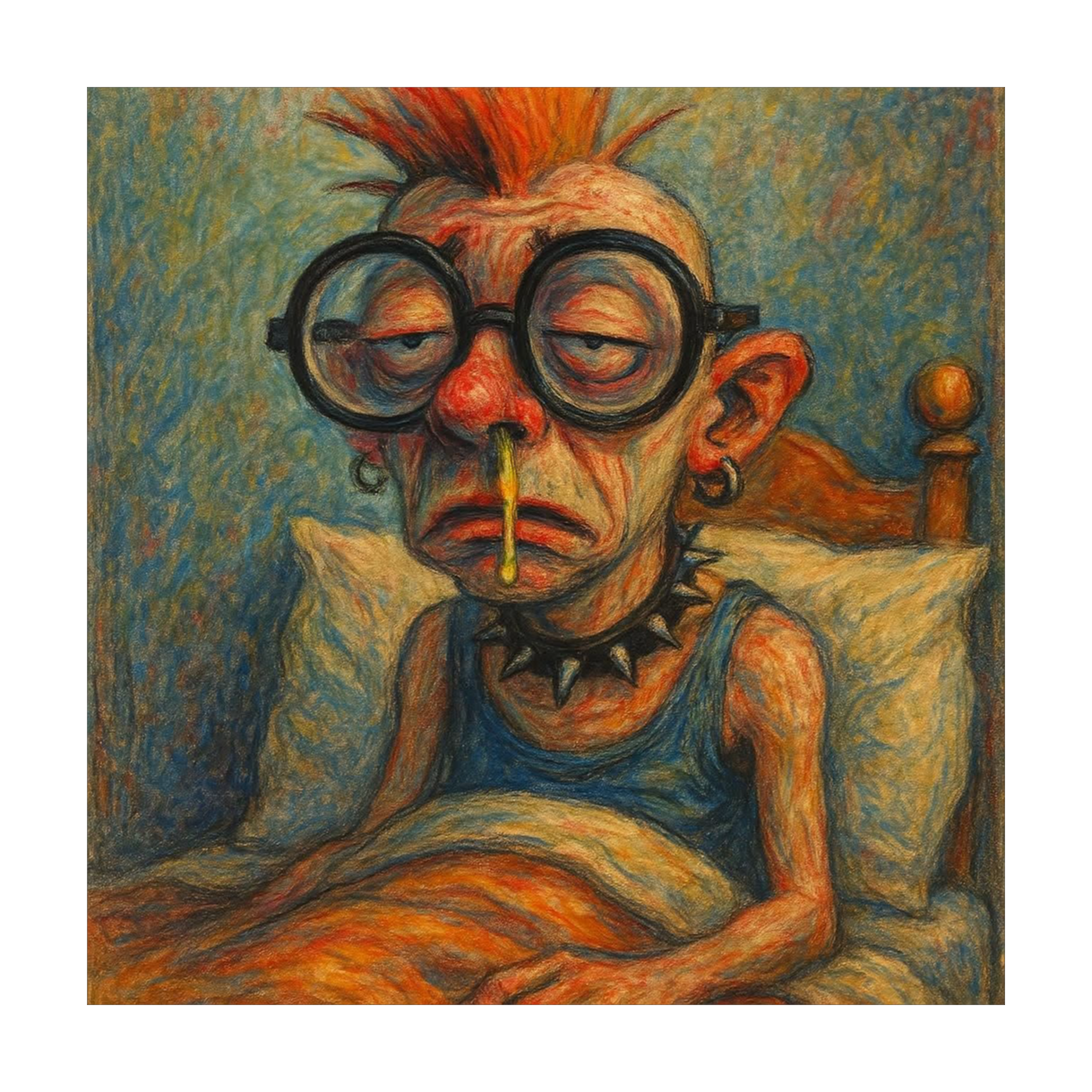 duet (male&female raspy raw dirty voices), hyper-melodic, ultra-heavy, super-fast-paced punk driven by low, heavy, down-tuned guitars and punchy drums, with a raw edge, Multiple layers of raspy vocals intertwine, delivering harmonies and a gritty, melodic hook, Energetic “oh” background-choir enhances each chorus, amplifying urgency and catchy intensity