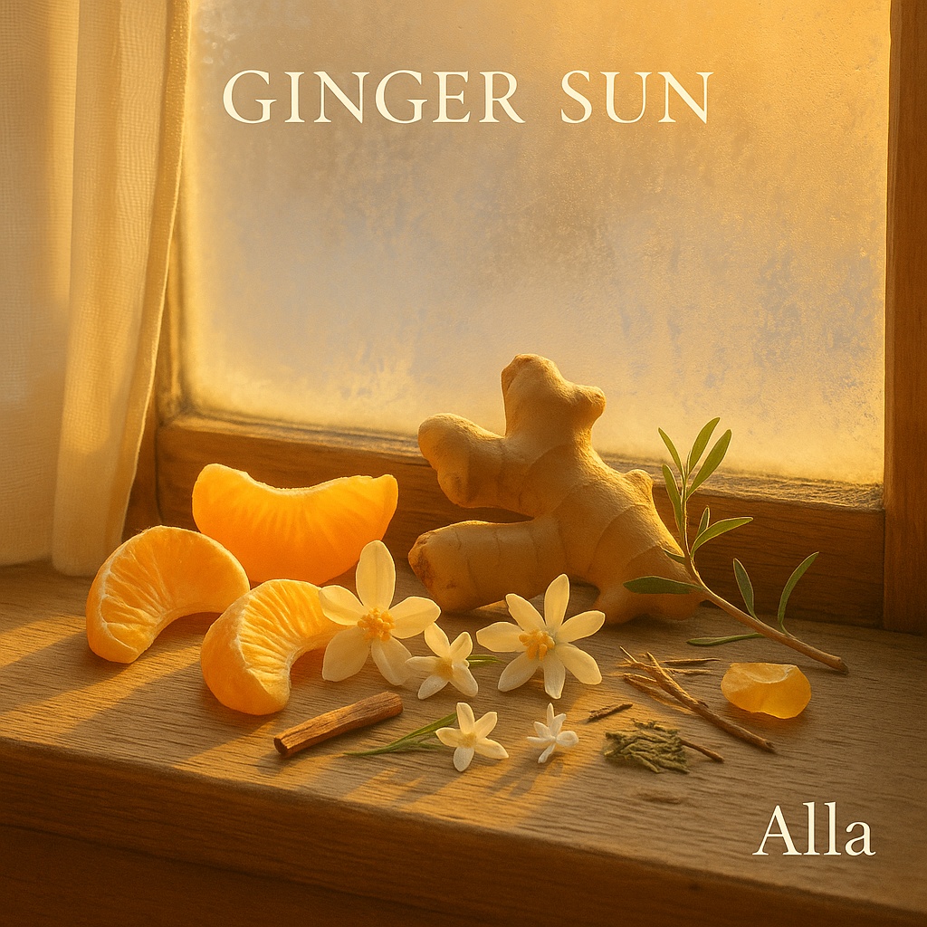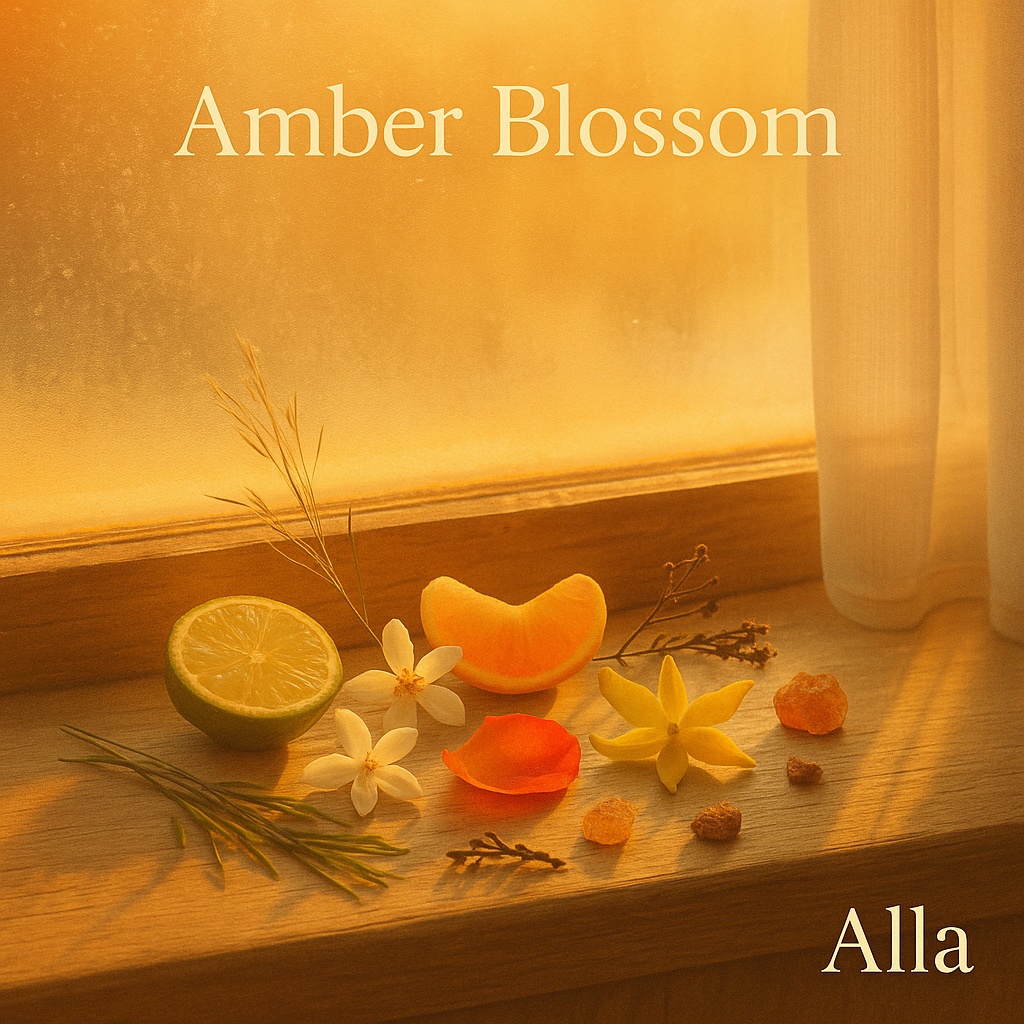 The piece opens with a luminous burst of bergamot and the fruity brightness of sweet orange, expressed as sparkling piano motifs and sunlit chords that energize the soundscape, Airy synth pads follow, capturing the white-green delicacy of neroli, while gentle arpeggios inspired by palmarosa add a fresh, fluid green floral touch, At the heart, the main melody blooms with the intensity of rose, wrapped in warm, sensual harmonies echoing the creamy radiance of ylang-ylang, lending depth and solar character, Gradually, the track settles into a rich, enveloping base: resinous cistus emerges as deep, textured bass, while benzoin brings smooth, vanillic softness with caressing pads and balsamic resonance, Everything evolves seamlessly, at a moderate tempo, radiating light, warmth, and subtle sensuality—no vocals, just an organic progression where each essence is woven into the music