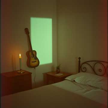 instrument: nylon acoustic guitar, tape-recorded voice, warm bass pad