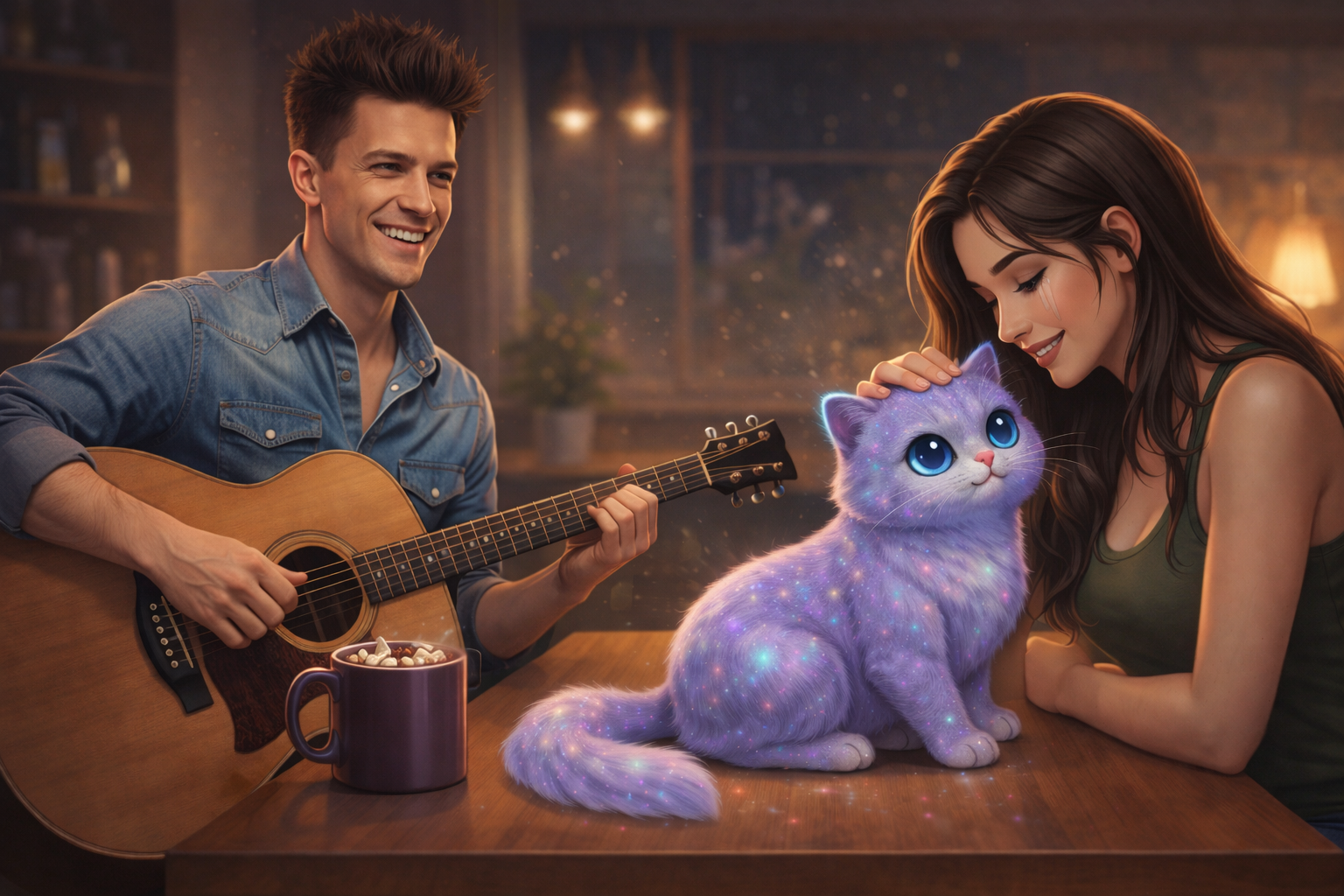 Mood: Gentle, Soothing, Caring, Calming, A wise friend wants to help Fox with her healing process, Genre: Acoustic Guitar Serenade that's mellow and slow tempo, Single instrumentation with the acoustic guitar, Plenty of space will be needed for the characters Tom and Luminai to sing and speak their parts