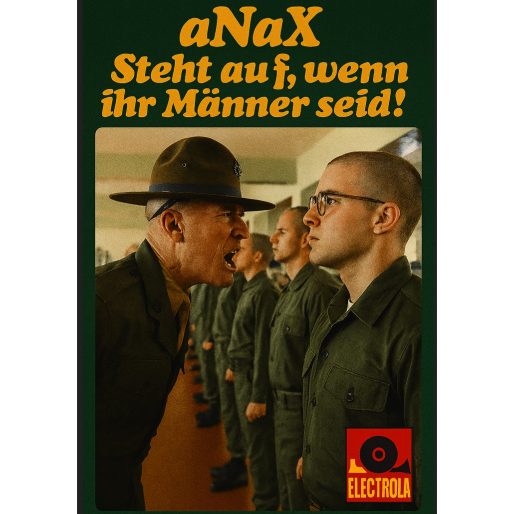 40er, the german march, hardstyle, german schlager, militäry pipes, militäry drums, old german general male voice singing and screaming, 40s touch, militäry vibes, militäry sound effects, marching chorus, festive, high-NRG
