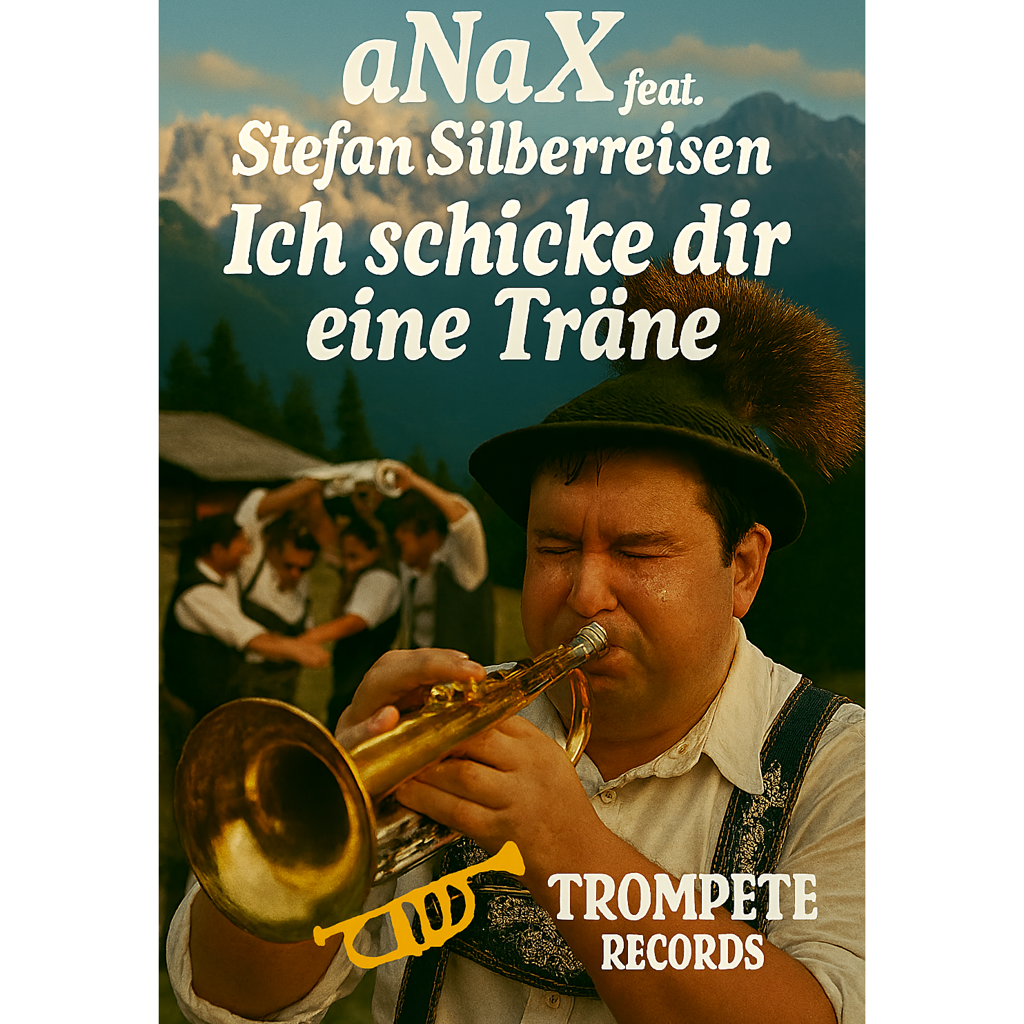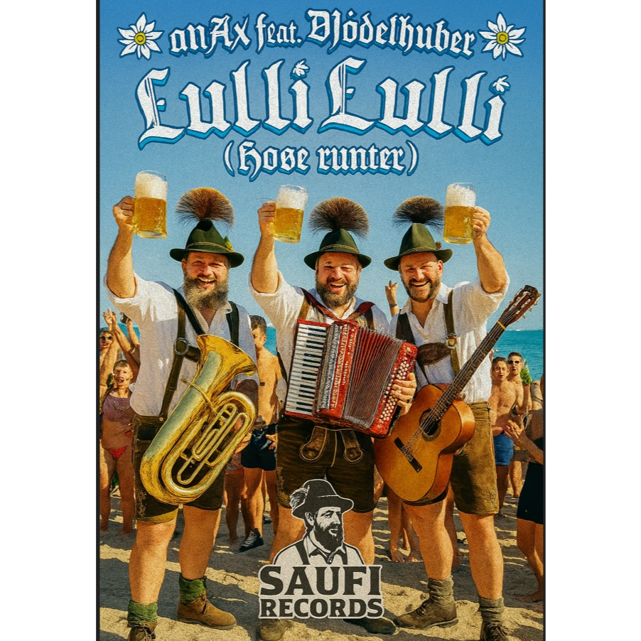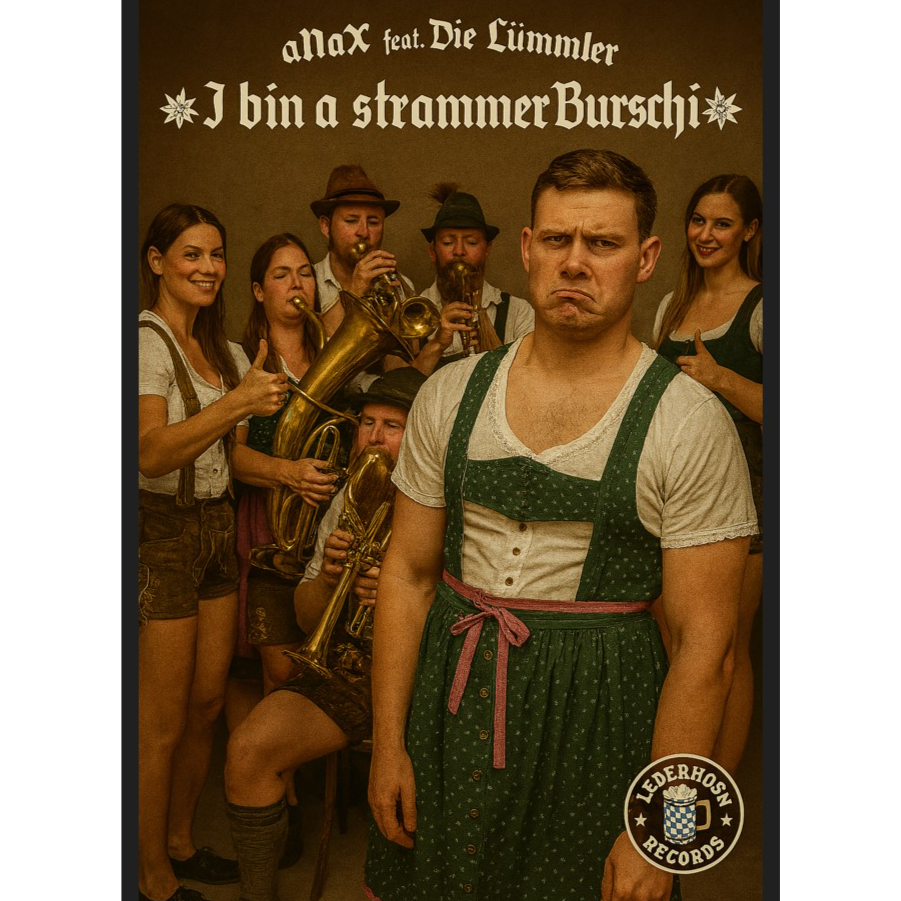 synthesis of party schlager, german schlager, ballermann and hardstyle, traditional volksmusik vibes, yodeling, acordeon, tuba, catchy chorus, comedy bavarian male voice singing, rolling r vocals, BG comedy bavarian male choir, BG comedy bavarian female choir, festive, high-NRG