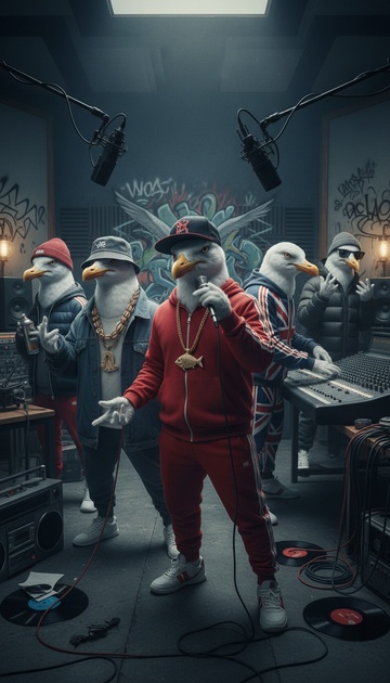 UK Grime / UK Drill hybrid, Mid-tempo coastal grime beat (130–140 BPM) with heavy sub-bass, punchy kicks, crisp snares, and sparse cold melodies, Windy, seaside atmosphere with occasional high-pitched whistle or gull-like synth stabs, Minimal, menacing instrumental with space for vocals, Aggressive but playful UK delivery, confident and mocking, clear articulation, strong character ad-libs, Call-and-response hooks encouraged, Mood is coastal menace, organised chaos, daylight intimidation, Generalised seaside setting (no town names), Wildlife street-gang POV: survival, territory, food raids, dominance, Treated dead-serious for comedic effect, Clean modern mix, bold personalities, cinematic but tongue-in-cheek