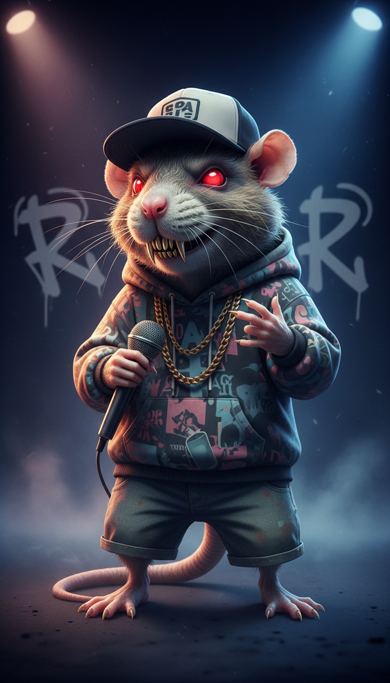 Mid-tempo UK drill beat with grimy 808s, rattling hi-hats, distorted bass growls, metallic percussion, and claustrophobic atmosphere, Aggressive, fast-paced vocal delivery with a sharp, slightly nasal tone, over-pronounced consonants, and breathy urgency, Lyrics from the perspective of cornered rats — underestimated, feral, hyper-alert, striking first because there’s no escape, Mood is tense, confrontational, and survival-driven, Urban underground energy, sewer-level grit, “little man syndrome” confidence, raw street realism, No polish, all pressure