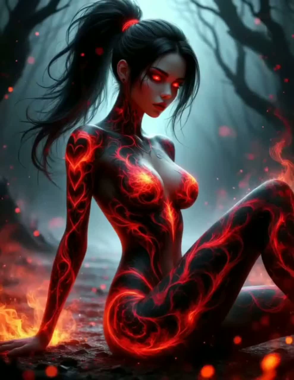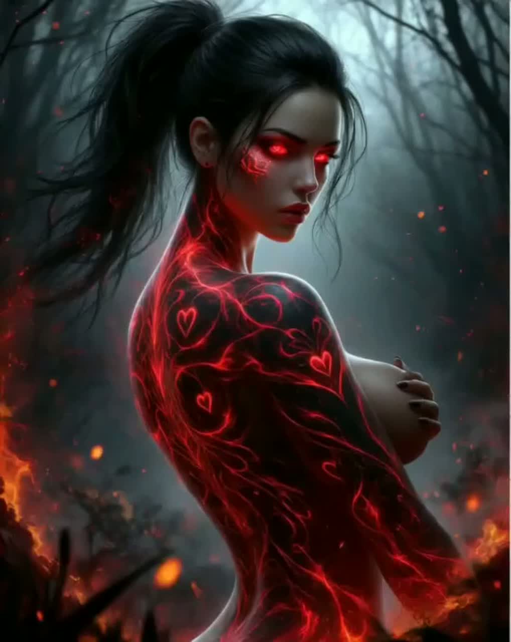 Dark Ambient Tribal Electro, Witch-House, NDH, Dark Ethereal Pop, Cinematic Forestcore, Pagan Metal Techno, Experimental Electronica, Ethereal Seduction, Shamanic Pulse, Animalistic Vocal FX, Hypnotic Whisperwave, Electro-Folk Fusion Synthwave, Female vocal—seductive, playful, wild, feral, hissy, whisper-growl, breath-heavy;