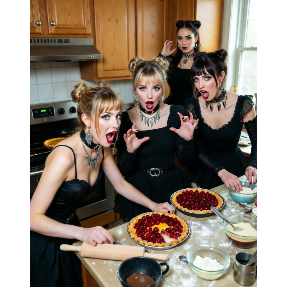 A high-intensity kawaii Anime Metal Girl-Group track built around dual-layered vocals, bright kawaii toplines, and downtuned 7-string rhythm guitars using drop A chug patterns, The drums use sharp transient-enhanced kicks, machine-tight double-pedal bursts, and syncopated snare ghost notes to keep the groove danceable but aggressive, The verses are melodic and cute, using parallel harmonies with a soft upper layer and a slightly distorted lower layer, The chorus expands with multi-tracked vocal stacks and a side-chained pad swell supporting the guitars, The song features a massive riff drop built with octave-stacked guitars, bitcrushed scream effects, and drum gates for a sudden impact, Overall tone is bright, girly, heavy, sugar-coated metal with polished J-rock production and a clear stereo spread