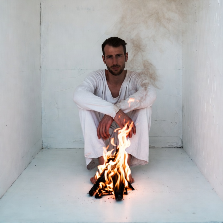 A dark, minor-key 140 BPM electronic rock track with a danceable pulse but a heavy emotional tone, The core is a fast, bright arpeggiated synth, but the mood is pulled down by deeper basslines, darker pads, and low-tuned guitars that enter on the chorus with thick, sustained power chords, The verses are half-spoken with tired delivery, the rap verse is fast and breathless to show inner chaos, and the chorus opens into a wide, emotional sad-boy rock vocal with a heavier weight, The overall feel is late-night loneliness, burnout, and the split between a tired mind and a restless body, kept grounded and human with cigarettes, pacing, and quiet frustration