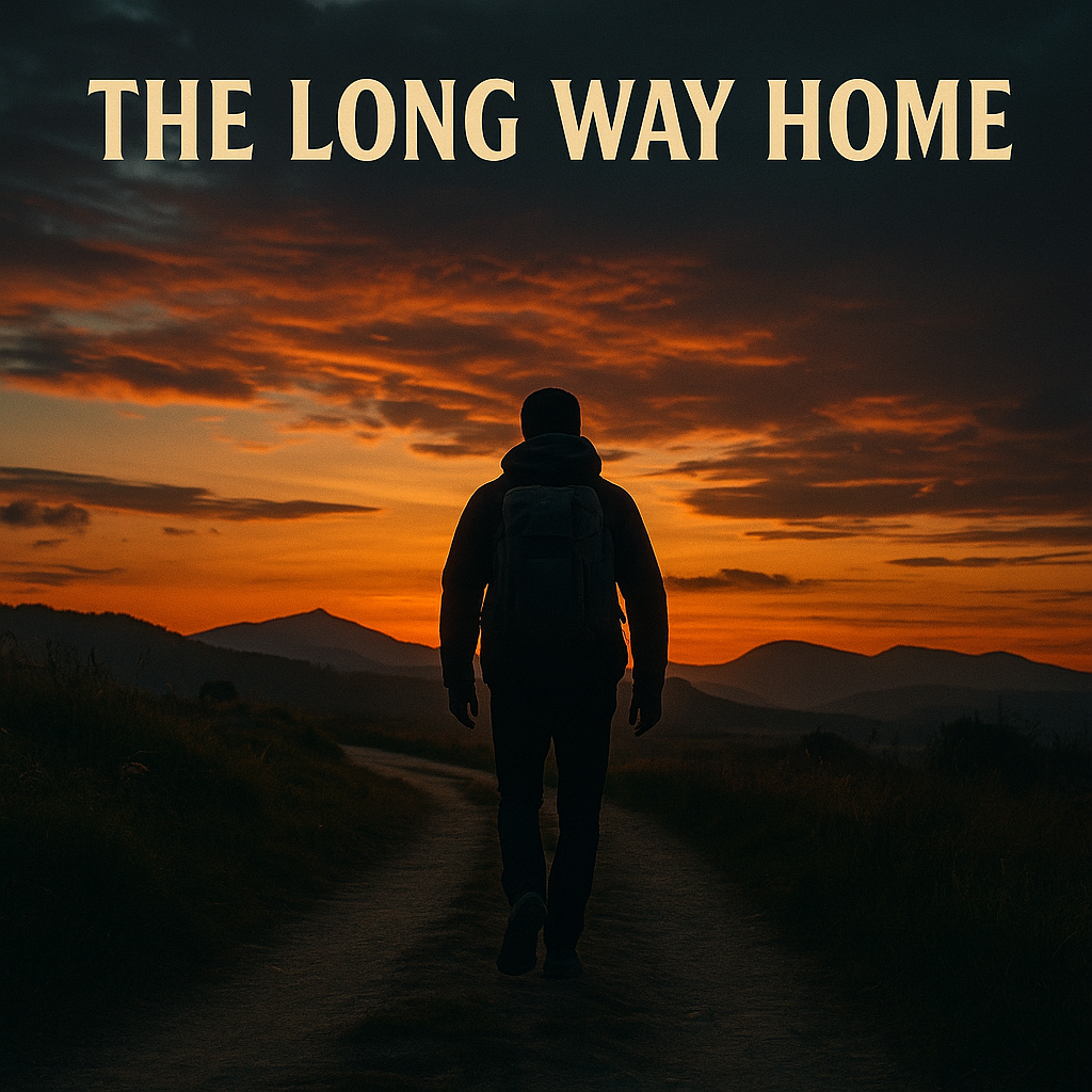Warm, intimate acoustic pop with a slow, steady heartbeat rhythm, Soft percussive guitar, gentle fingerpicking, light palm-muted groove, Male vocal: clear, tender, youthful, slightly breathy, emotional, and subtly raspy on the higher notes, Smooth British-leaning diction, expressive runs, and a conversational flow that feels close to the microphone, Keep the tempo relaxed, reflective, and poetic — not rushed, not upbeat, but steadily moving forward like a quiet late-night drive, Add deep, warm acoustic layers, soft bass swells, minimal brush percussion, and sparse claps only as accents, The chorus should bloom with rich harmonies and a wider melodic lift, but still remain grounded, soulful, and intimate, Reverb should be soft and cinematic, creating space without overpowering the voice, Mood: peaceful, nostalgic, wandering, deeply emotional, Ending should fade with lingering guitar and gentle ambience, like the road continuing beyond the horizon
