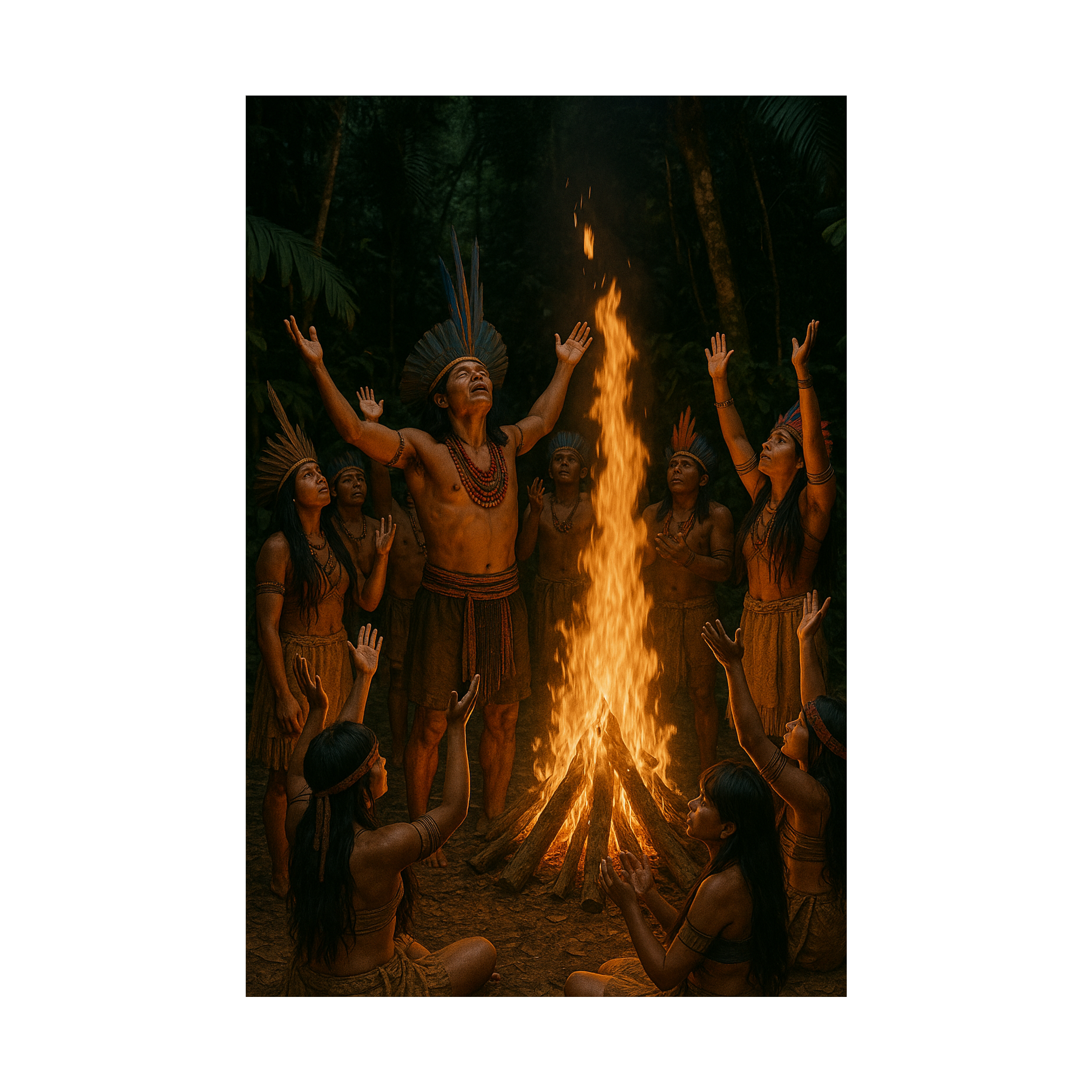 Latin EDM Dance / Reggaeton club beat, 124 BPM, heavy bass, tribal percussion, catchy vocal chops only in Tupi-Guarani (Abá, Eté, Tupã, Pindorama, Porang, Arandu, Nhanderu), urban Skrillex-style drops, hypnotic festival anthem, high energy