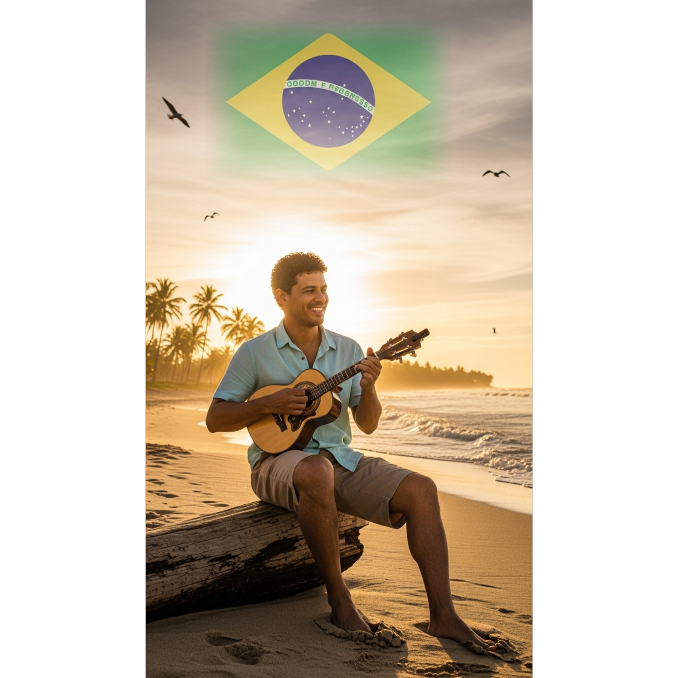 Brazilian pop rock with ska and reggae influences, Upbeat and radio-friendly sound with groovy bassline, clean electric guitar riffs on offbeat chords, and light brass accents (trumpet and saxophone), Drums with steady pop-rock beat mixed with reggae hi-hat patterns, Energetic male vocals in Portuguese, catchy and commercial, with a playful and romantic tone, Lyrics theme: dreaming of visiting the Netherlands (Holland), mixing cultural references (tulips, wooden clogs, football “orange machine”, canals, the “forbidden breeze”), and the word “Compasso” in the chorus, BPM: 98