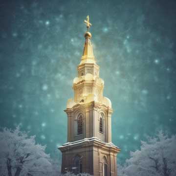 and bell-like chimes for a festive and reverent atmosphere, orchestral, choir-driven, swelling strings, majestic; featuring lush harmonies