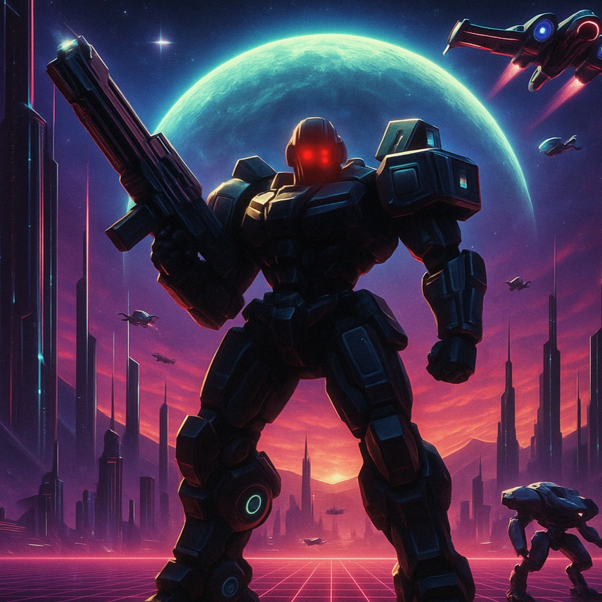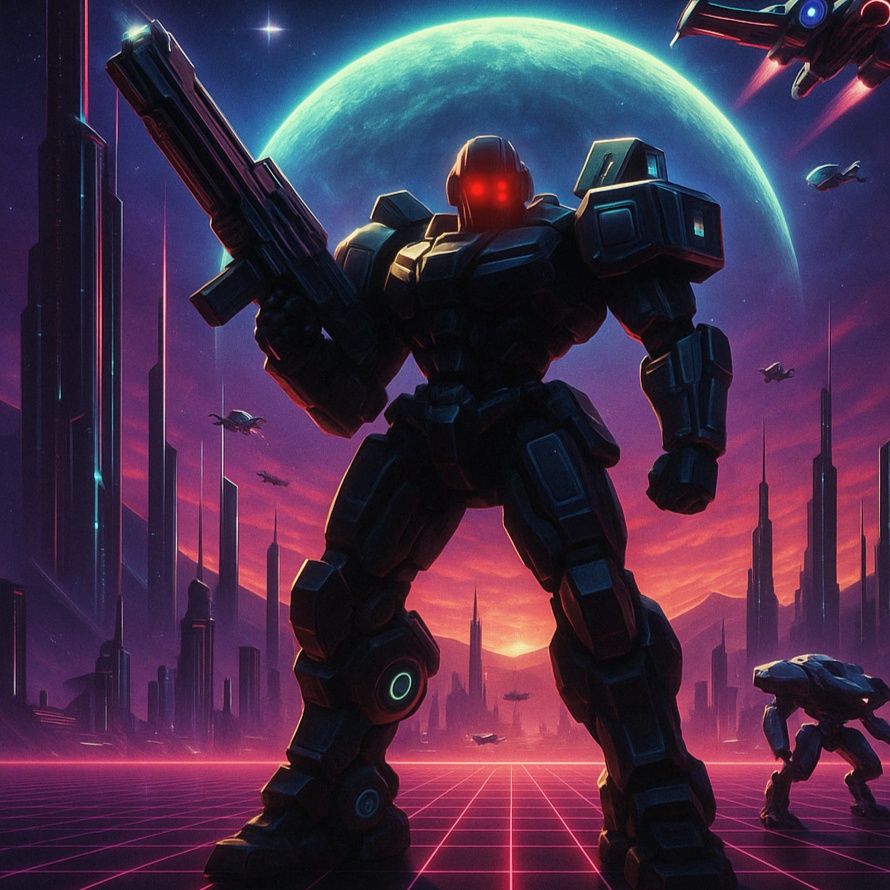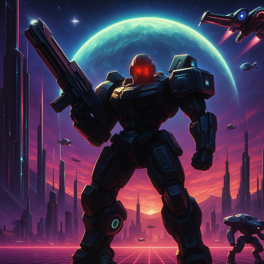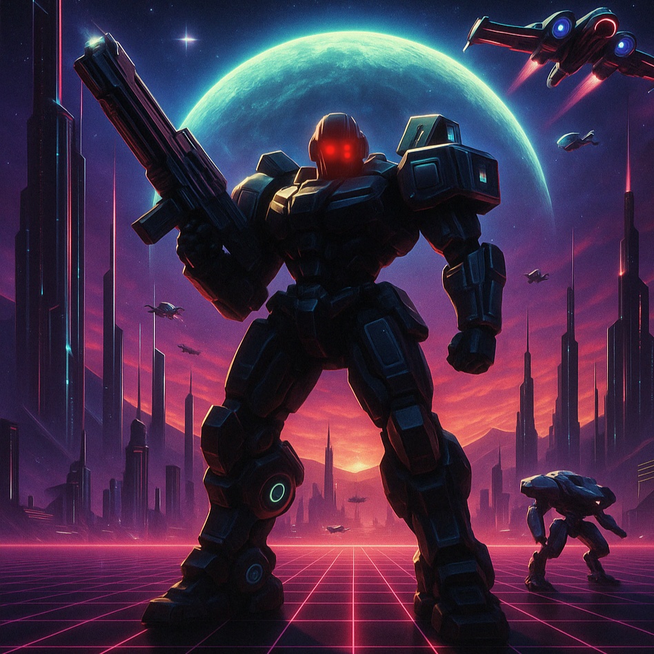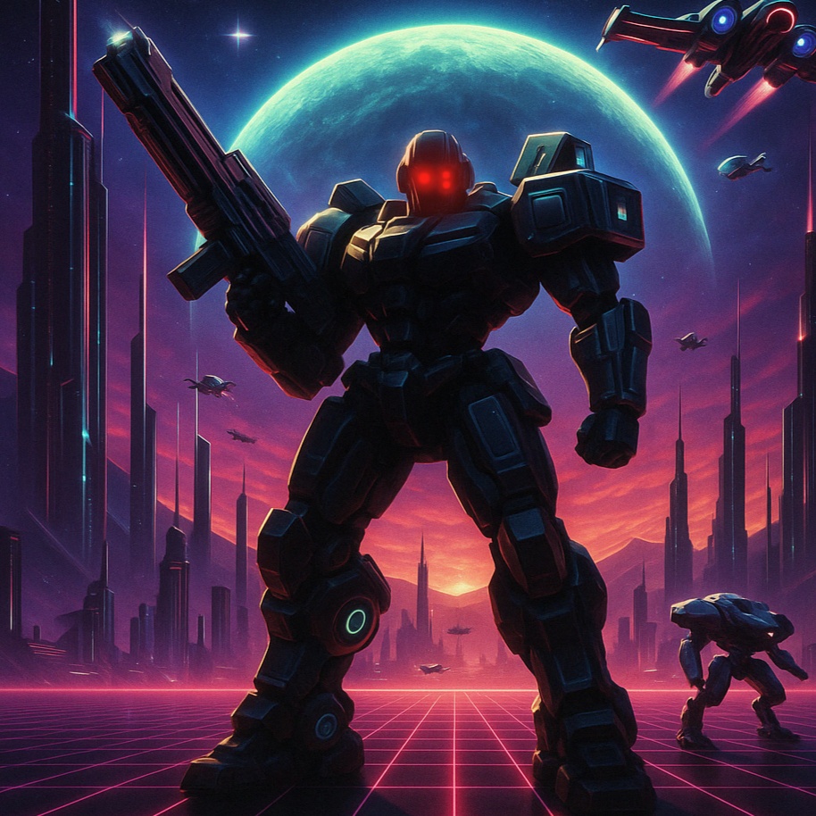 Synthwave, cinematic, futuristic, cold, resolute, inevitable, calm, tempo=steady, heavy