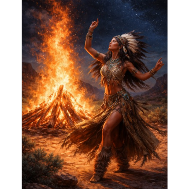 epic powwow–metal fusion track, Include stomp-clap powwow drums, rattles, hand drums, distorted guitars, and heavy bass, tribal heavy metall fusion song with tribal drum and pipe intro, distorted guitars and pounding drums, powerful female vocals, epic, cinematic dynamics, raw and powerful