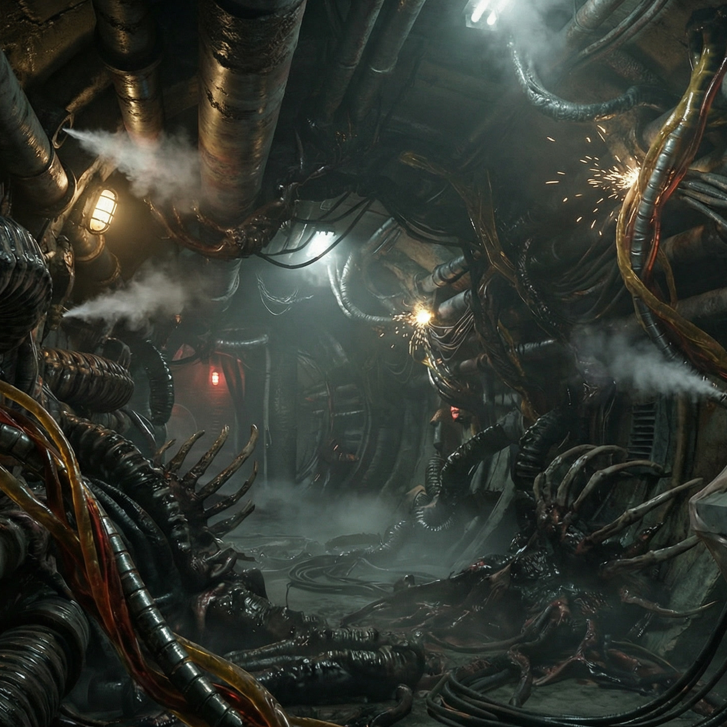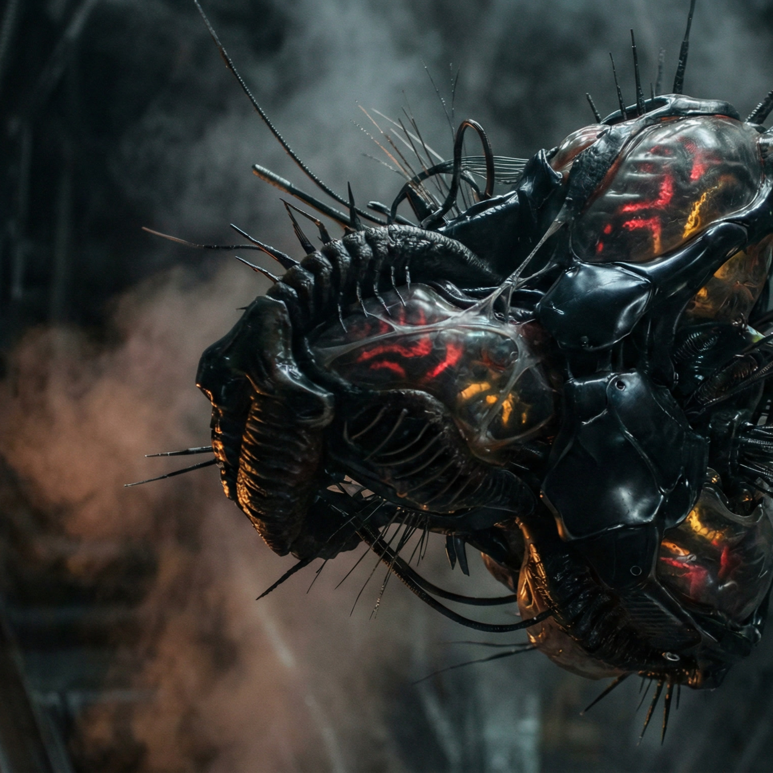 metal, industrial dark ambient, distorted metal, alien biomechanical atmosphere, slow, dark ambient, industrial