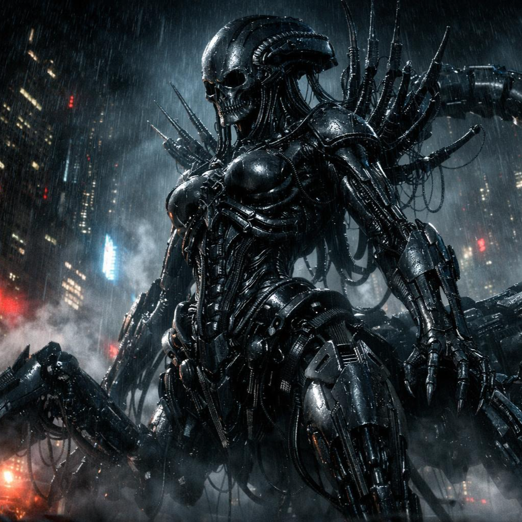 Minimal industrial, machine logic rhythms, metallic percussion, restrained dynamics, biomechanical cyberpunk mood, dynamics, industrial, minimal
