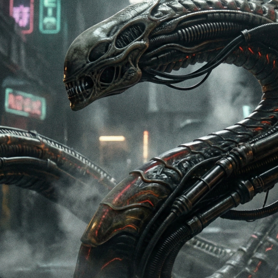 dark ambient, neural textures, metallic resonance, slow tension build, alien intelligence, cinematic sci-fi dread, slow, dark ambient