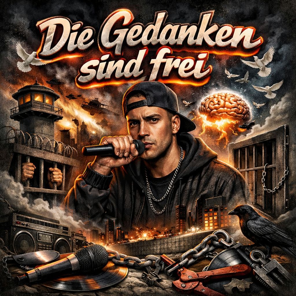hip hop, rap, underground hip hop, 88-95 bpm, drum'n'bass beats, male vocals, clear speaking high german voice