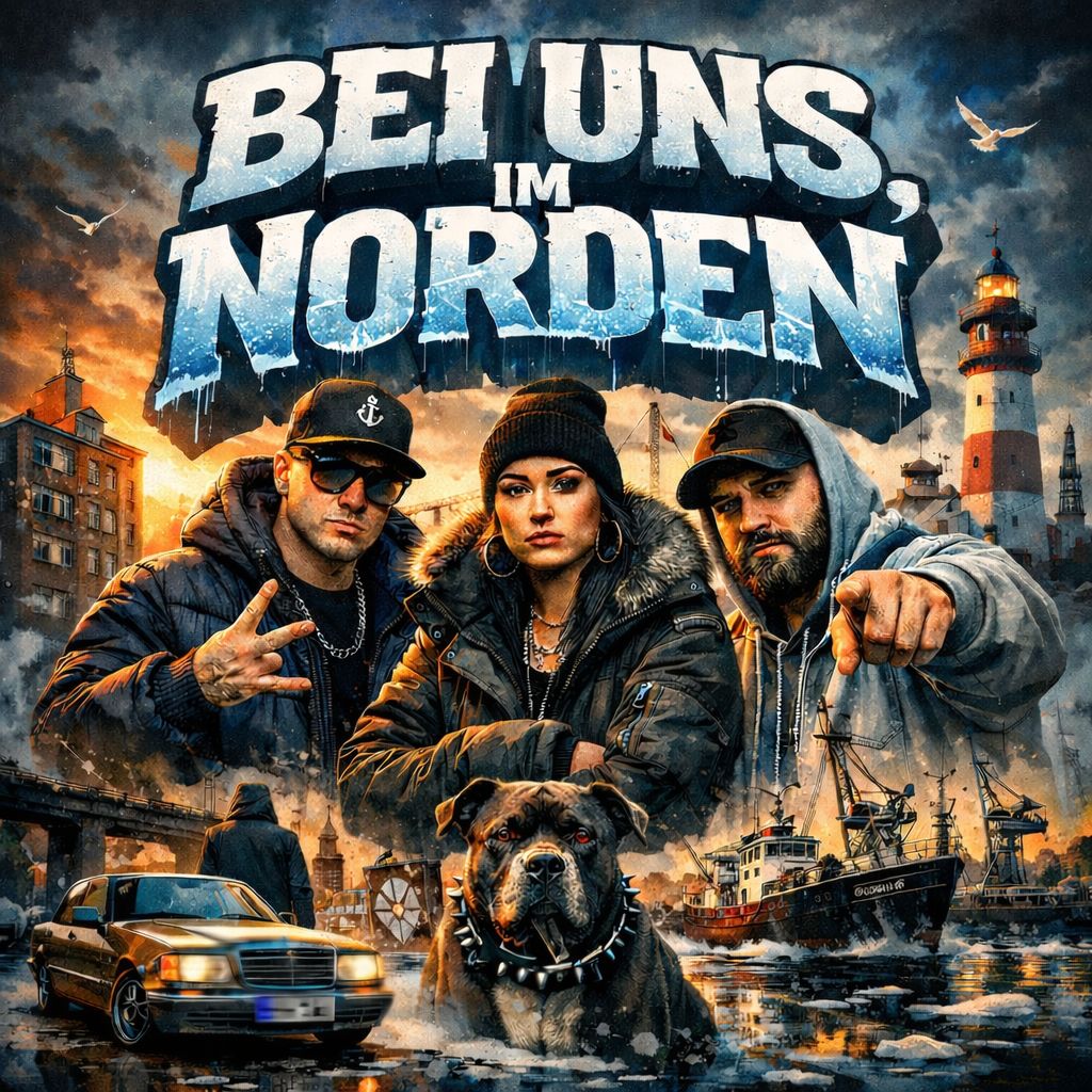 hip hop, plattdeutsch, language is in focus, clear speaking voice, 85-90 bpm, old-school beats, scratching, crackling and hissing record sounds, male vocals, female vocals, happy, uplifting