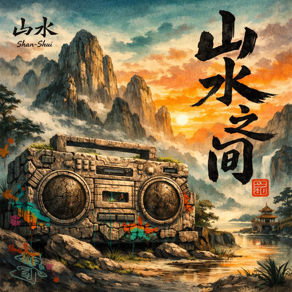 90s East Coast Boom-Bap, authentic golden era hip hop, heavy MPC drum break, punchy kick and crisp snapping snare, melodic traditional Chinese Guzheng and Dizi flute samples, deep soulful jazz upright bass, lo-fi vinyl crackle, atmospheric mountain ambiance, serene and peaceful mood, high quality production, 88-92 BPM, nostalgic and soulful