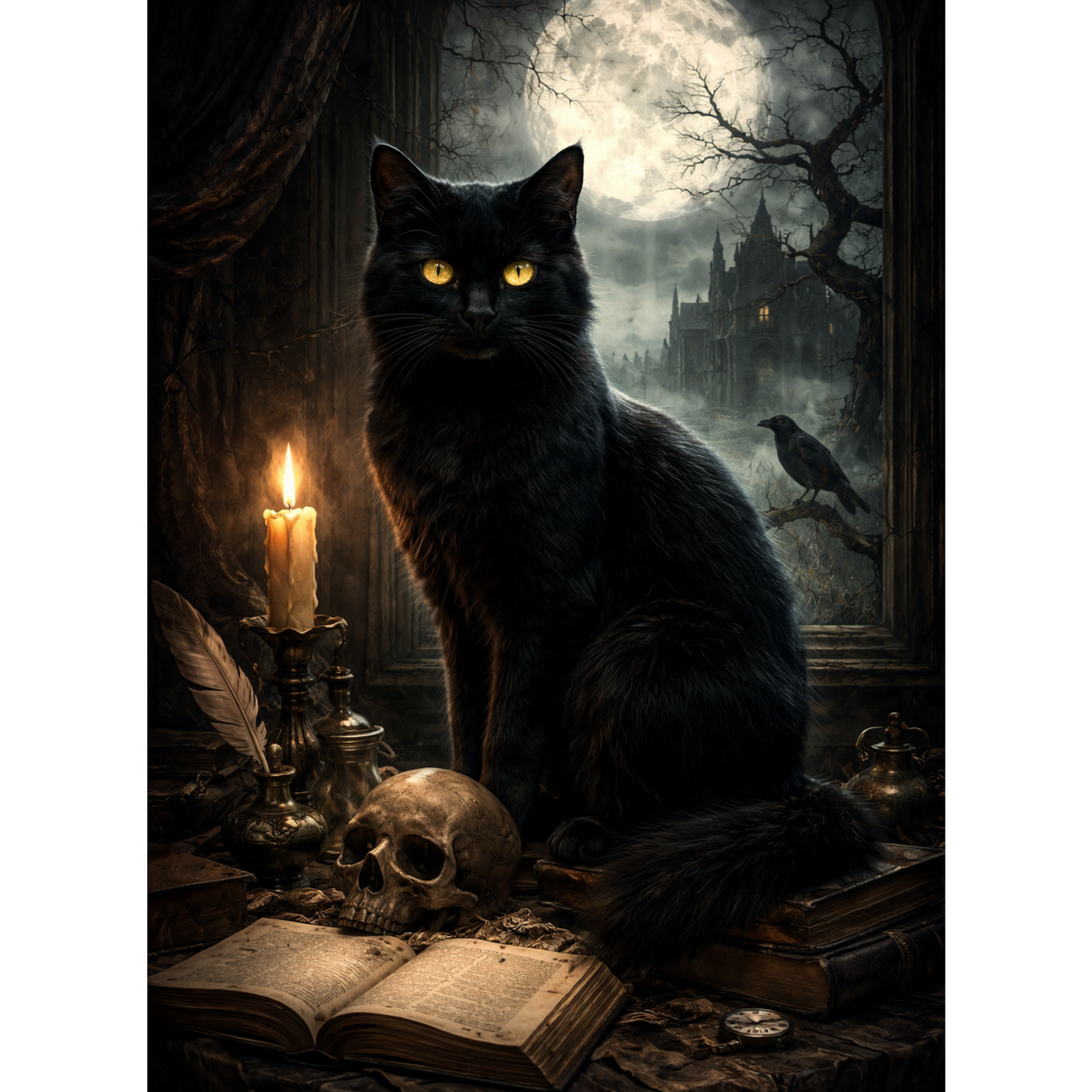 A gothic horror rock track inspired by Edgar Allan Poe’s “The Black Cat”, The lyrics are in Japanese and portray the psychological breakdown of a man haunted by a cat’s presence and a mysterious voice, told from a cold, detached narrator’s perspective, The tone is dark, intense, and progressively chaotic, evoking insanity, guilt, and supernatural dread, Vocals are soft female singing with distorted whisper sections, and a sense of theatrical violence, The arrangement should resemble medieval gothic rock — using instruments like harpsichord, distorted guitar, heavy drums, church organ, and ambient sound textures, No Japanese traditional instruments, The outro should fade into silence with eerie echoes, as if the listener is left alone with the cat and something still watching