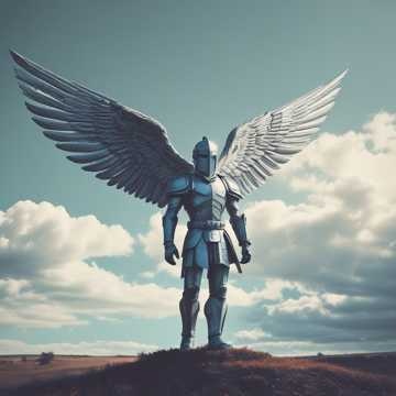symphonic, mechanical, industrial, metallic clashes, robotic tones, angelic choirs, celestial, power metal, divine, Sultry male vocal, Anime