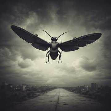 heavy metal, insect, high-speed combat, aggressive, buzzing synths, metallic, bass male vocal