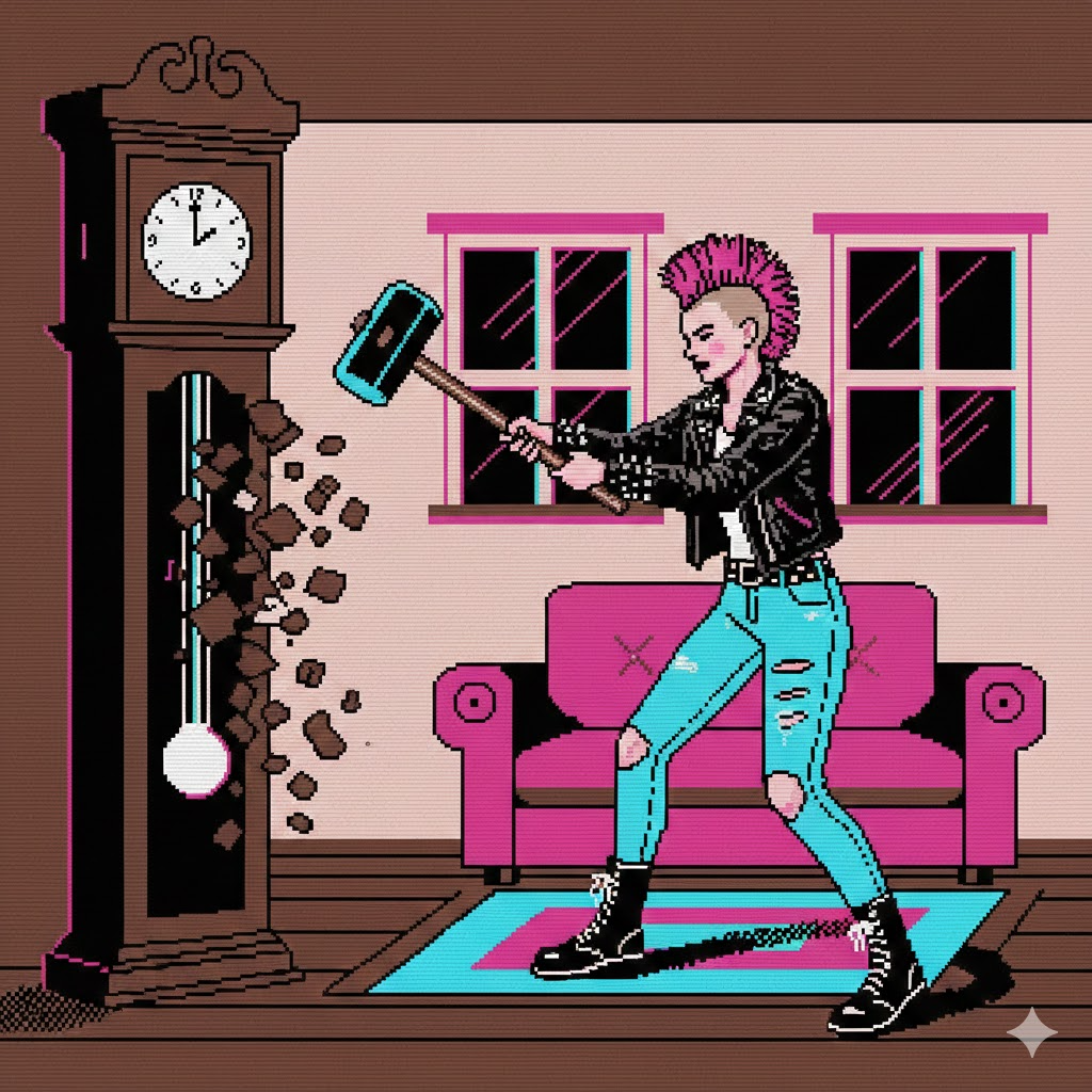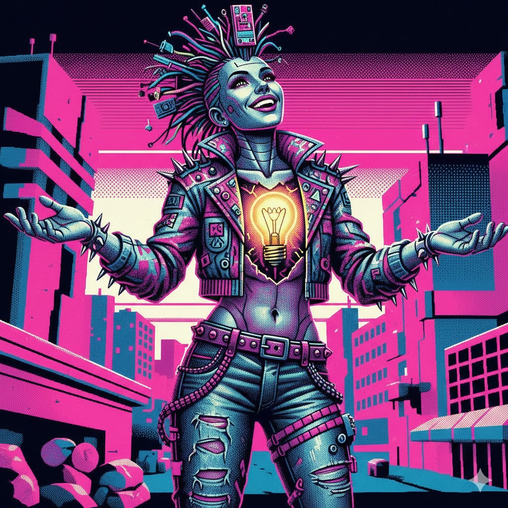 Experimental trippy industrial EBM doo-wop electroclash house ambient, dance, playful, upbeat, heroic, soaring, triumpant, major key, analog synth, grind stutter, LFO on ambient pads, square wave bass, detuned sfx bursts, female Vocaloid spoken vocals