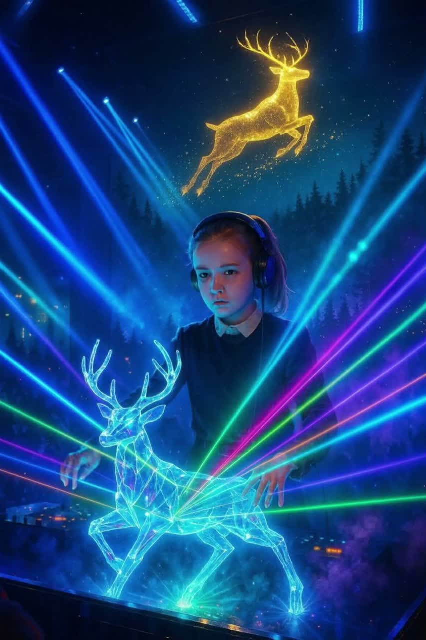 This dark synthwave track launches with brooding analog synths and a resonant, pulsating bass, accented by cosmic, intertwining arpeggios, Sparse, processed barks and mischievous giggles appear as textural FX, Syncopated, crisp percussion drives the groove, while the breakdown introduces haunting whistling melodies, deepening the eerie, interstellar feel