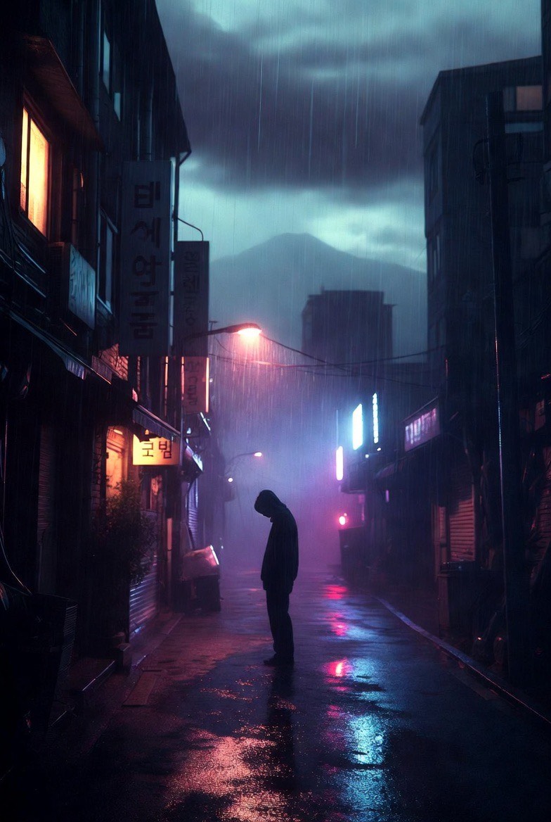 Korean boombap with strong blues influence, bluesy boom bap, melancholic dusty jazz blues samples, slow heavy drums with blues guitar feel, vinyl crackle, raw emotional Korean male rap, blues storytelling about struggling life in Seoul, sad resilient flow, Arirang folk blues twist, 85-92 BPM, gritty tired voice