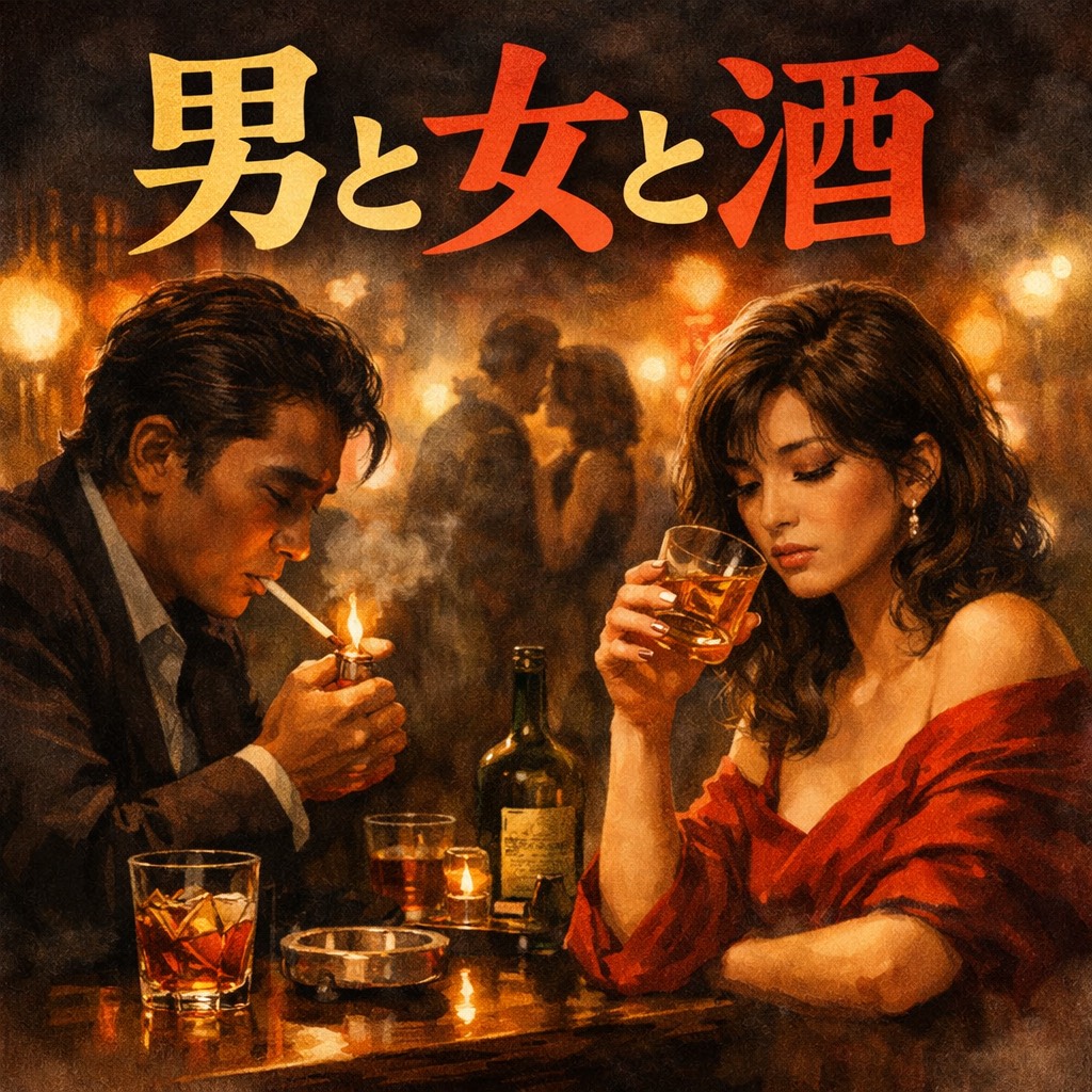 Soulful Showa-era Japanese kayōkyoku, Husky female vocal, low and smoky tone, emotional and slightly melancholic, Slow tempo (~72–76 BPM), Warm nostalgic arrangement: electric piano, soft strings, mellow saxophone fills, deep bass, gentle live drums with brushed snare, Mood: late-night bar, bittersweet love, regret, loneliness, mature romance, Expressive phrasing, subtle vibrato, intimate yet dramatic, Structure: Hook → Verse 1 → Hook