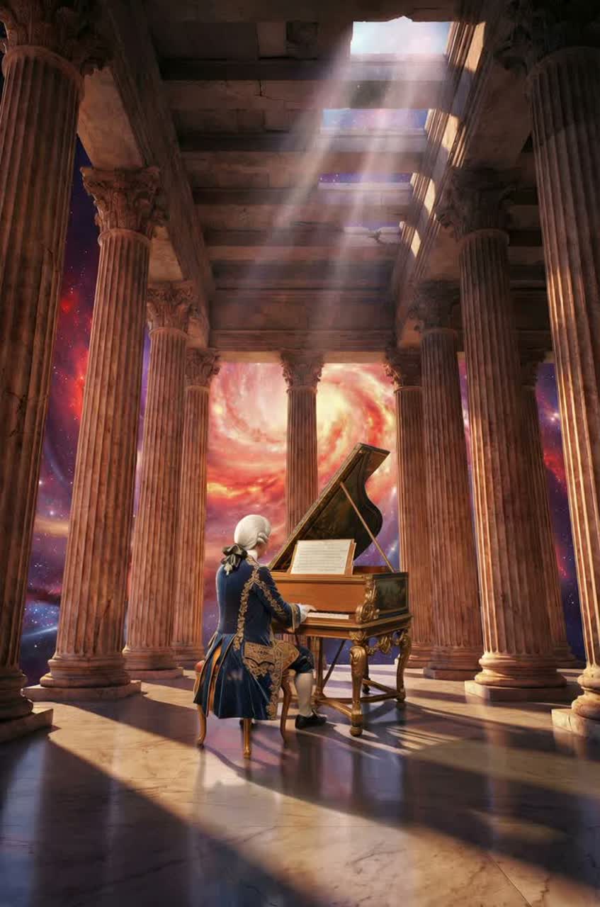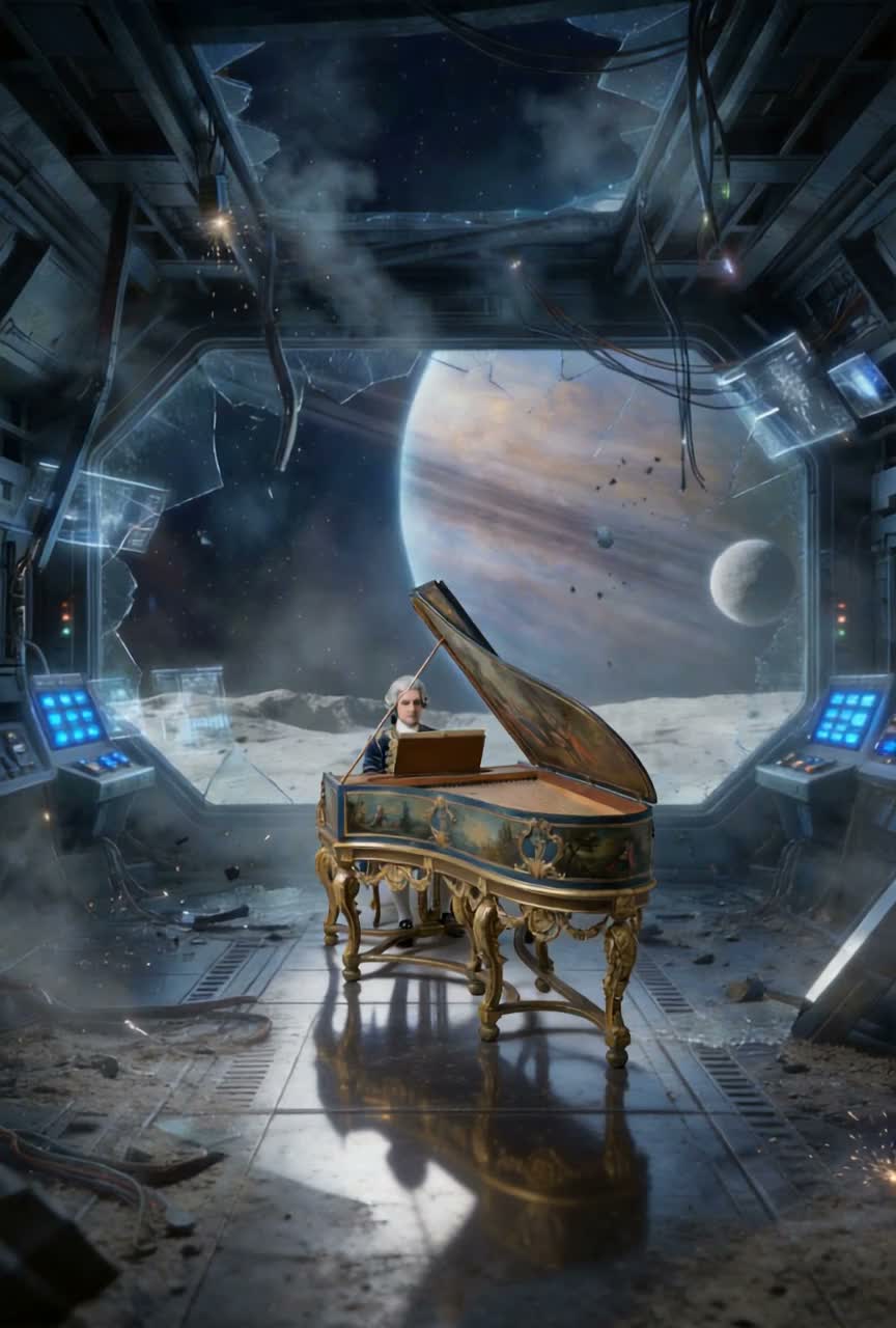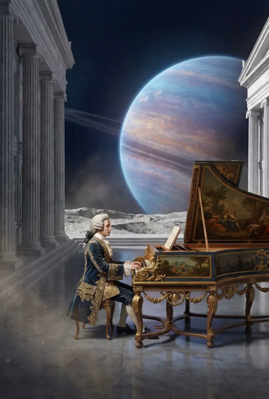 A magical ambient instrumental with a vivid baroque core and deep emotional soundscapes, The harpsichord is bright, expressive, and articulate, playing lively baroque-inspired patterns, Around it unfold warm evolving drones, shimmering pads, dark cosmic synth textures, and subtle atmospheric movements that add emotional depth and mystery, No vocals, no choir, no vocal pads, The atmosphere is spacious, glowing, and slightly otherworldly, blending energetic baroque colors with immersive, emotionally resonant ambient minimalism