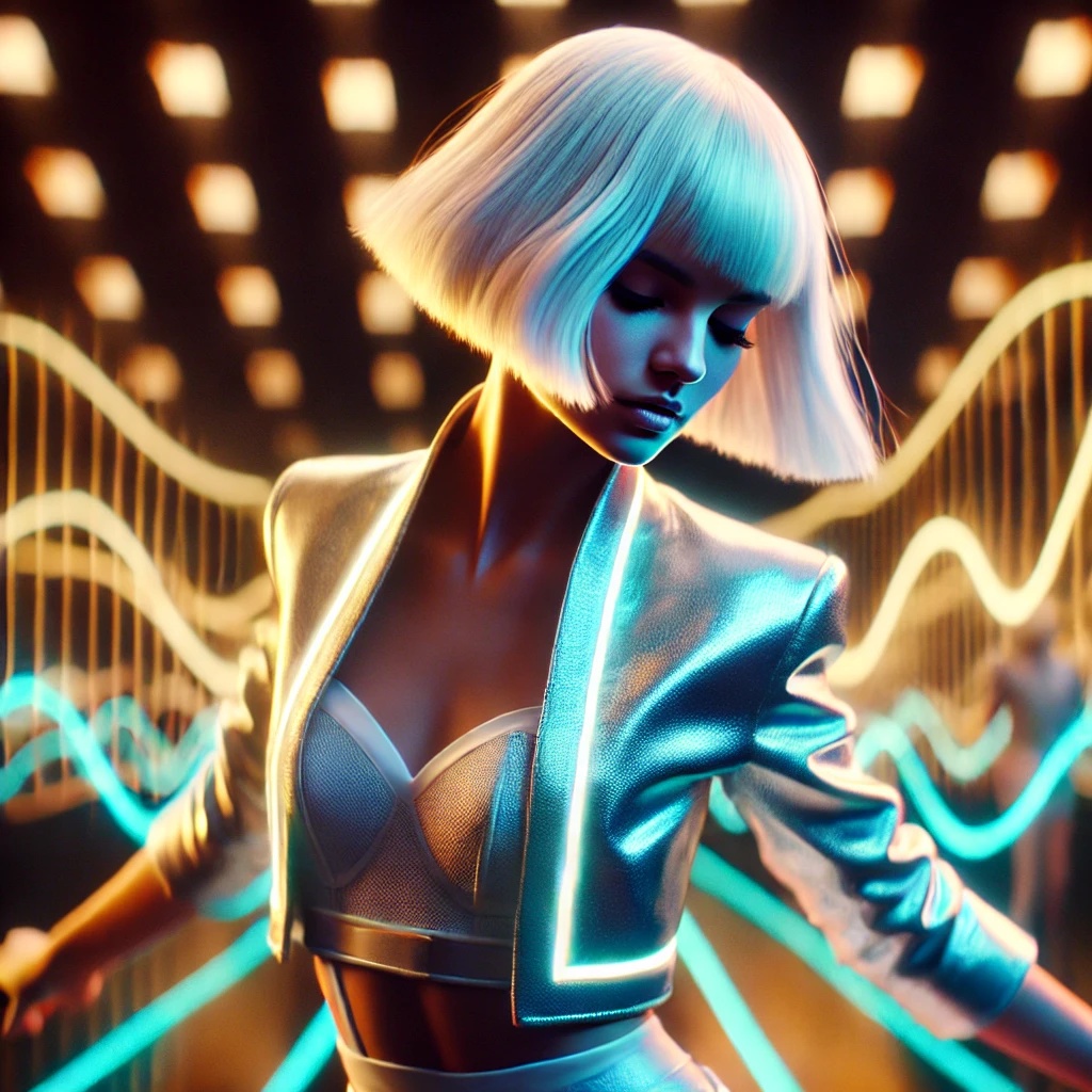 A futuristic blend of synth-pop, afrobeats, and hyperpop, infused with glitch effects and atmospheric textures, Dynamic, rhythmic, and emotionally charged, perfect for dance and viral moments