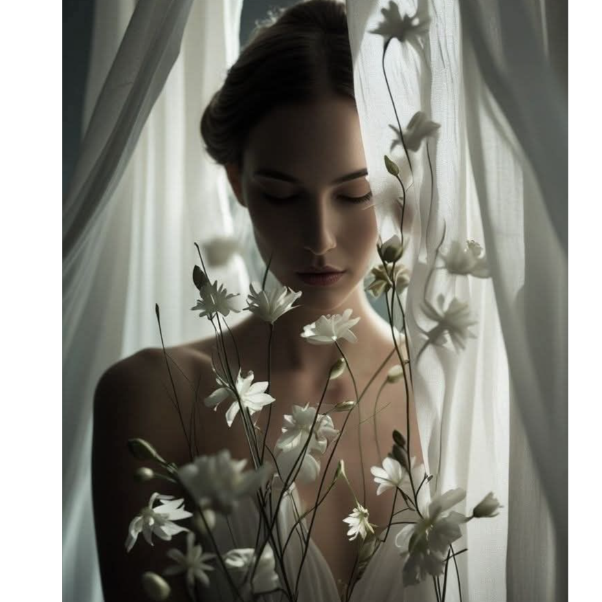 Genre: Ambient Trap Soul, R&B, minimalist blues influence, Vibe: Haunting, intimate, melancholic, ethereal, Voice: Female, soft, whispery, breathy, deeply feminine and vulnerable, close-mic, with subtle emotional cracks, Instrumentation: A lonely, reverbed electric guitar playing sparse, bluesy licks, A deep, sub-bass pulse that enters subtly, Minimal, dusty trap snares that hit only on the 2nd and 4th beat, far in the background, Ambient atmospheric pads that swell like a faint memory, Occasional, distant piano keys drenched in reverb, Structure: No traditional "drops, " Dynamic builds are achieved by stripping elements away, leaving only voice and guitar, or by introducing a faint, mournful synth string layer in the final chorus, The overall mix is spacious, dark, and watery, with everything feeling submerged in gentle reverb, Key Elements: Maximum emotional space, minimal percussion, the voice as the central instrument, a sense of drowning in slow motion