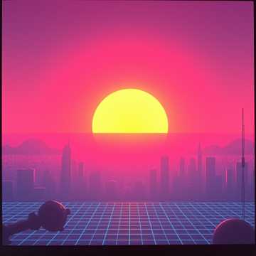 Energetic 80s synthpop × melodic techno · retro sci-fi · Tetradis style