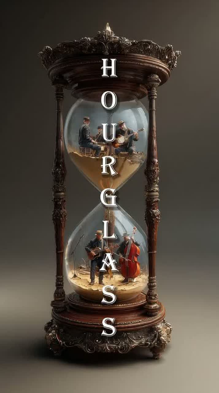 Dark, minor‑key bluegrass ballad with clawhammer banjo, mandolin tremolo, bowed bass, and mournful fiddle, Start slow, sparse, and shadowed — intimate male vocal with a haunted Appalachian tone, As the song progresses, gradually increase the tempo and rhythmic drive, adding more aggressive banjo rolls, tighter mandolin chop, and rising fiddle energy, Keep the atmosphere eerie and tense even as the pace quickens, like time slipping faster through the glass, Choruses open with tight, ghost‑close harmonies, Final section should feel urgent, breathless, and fate‑driven, Raw, gritty, and mountain‑dark