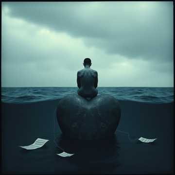 A depressive grunge track in D minor at 92 BPM opens with grungy, slow heavy guitars over a sparse, plodding drum groove, Tired, haunting male vocals enter, drenched in subtle reverb, Bass remains thick and downtuned, reinforcing a bleak, factory-like monotony, Industrial textures and distant feedback murmur beneath the verses, while choruses swell with layered, distorted guitars, yet maintain the sluggish pace, The bridge features a breakdown with minimal instrumentation—clanging metal samples and rumbling bass—before the final chorus returns, thunderous yet morose, ending with echoing, fading guitar noise
