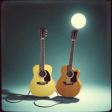 Acoustic twin-guitar fusion inspired by Lara & Reyes, Two expressive guitars — one semi-acoustic and one nylon-string (gutt) — performing in harmony and dialogue, They alternate as lead and rhythm every 8 bars, blending fingerstyle melodies with gentle strumming and percussive comping, Occasional piano phrases weave softly between the guitars, adding warmth and lyrical depth, Minimal, warm arrangement with light synth pads, soft bass, and gentle percussion, Smooth and poetic atmosphere under the autumn moonlight, Japanese female vocal with a shimmering, intimate tone that blends naturally into the acoustic texture