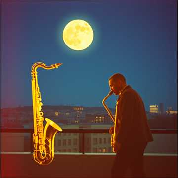 meandering saxophone melody, late-night, subtle electric guitar riffs, saxophone, and a warm, relaxed; tr-909 drum machine with steady 8-beat, jazz, jazz fusion, conversational piano chords, electric, upright bass walking smoothly, steady