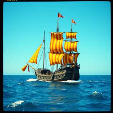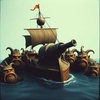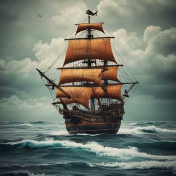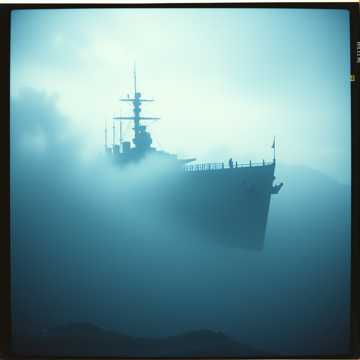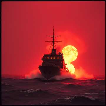 Dark western ballad in the style of “Ghost Riders in the Sky” by Johnny Cash or The Outlaws, Minor key, steady galloping rhythm, reverb-heavy twang guitar, deep baritone male vocals, ghostly background harmonies, and stormy ocean ambience, Tone: haunting, mythic, cinematic — “naval cowboy ghost story, ”