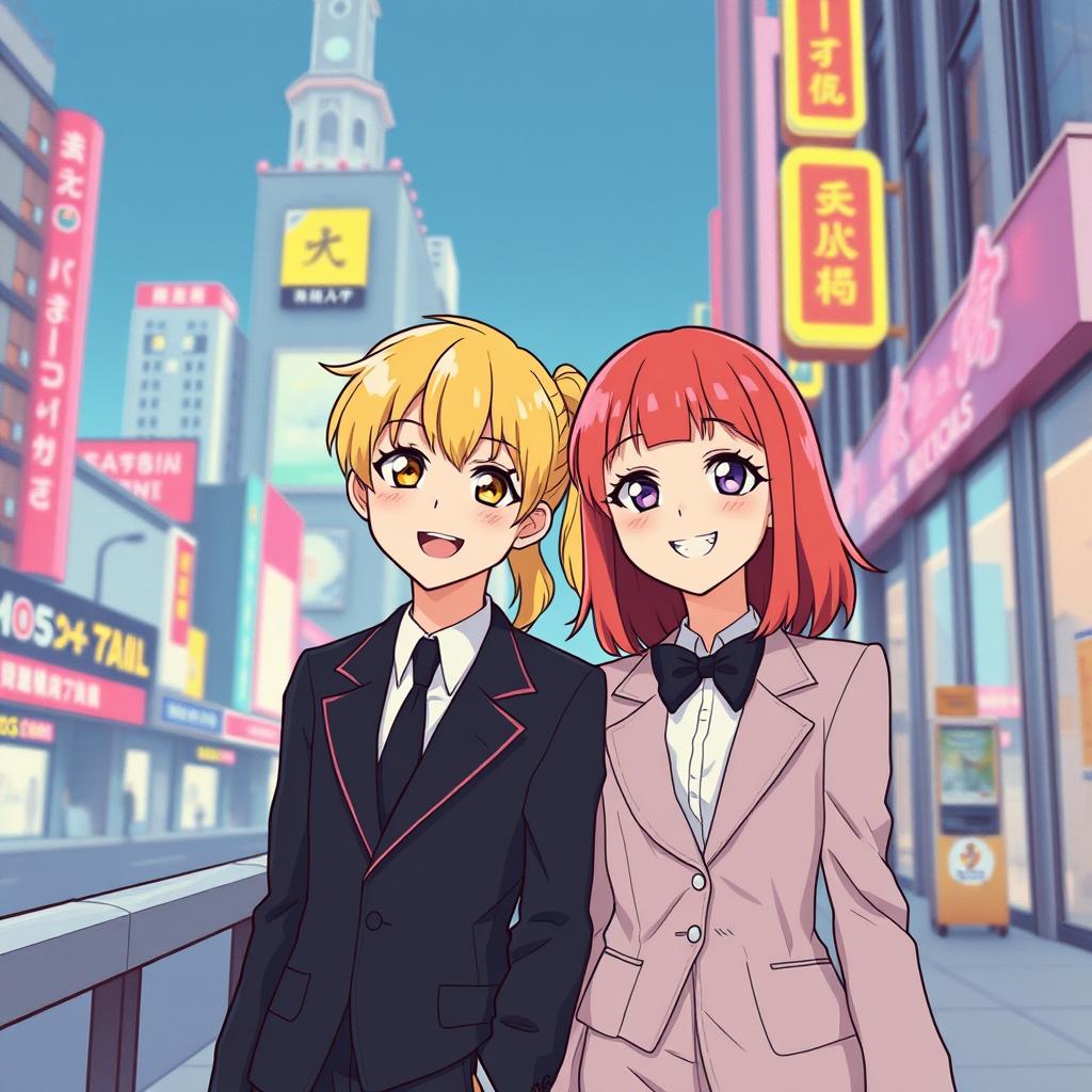 metal, High-energy J-pop meets speed metal: double-time drums, bright distorted guitars, fizzy synth leads, Female vocals, cute and hyper, bouncing between rapid-fire melodic phrases and shouty gang hooks, Verses tight and riffy; chorus explodes into big major-key lines, stacked harmonies, and octave guitar leads, Brief half-time break for a playful spoken-style bridge before a final key-lift chorus, pop, speed metal, uplifting, female vocals, anime, j-pop