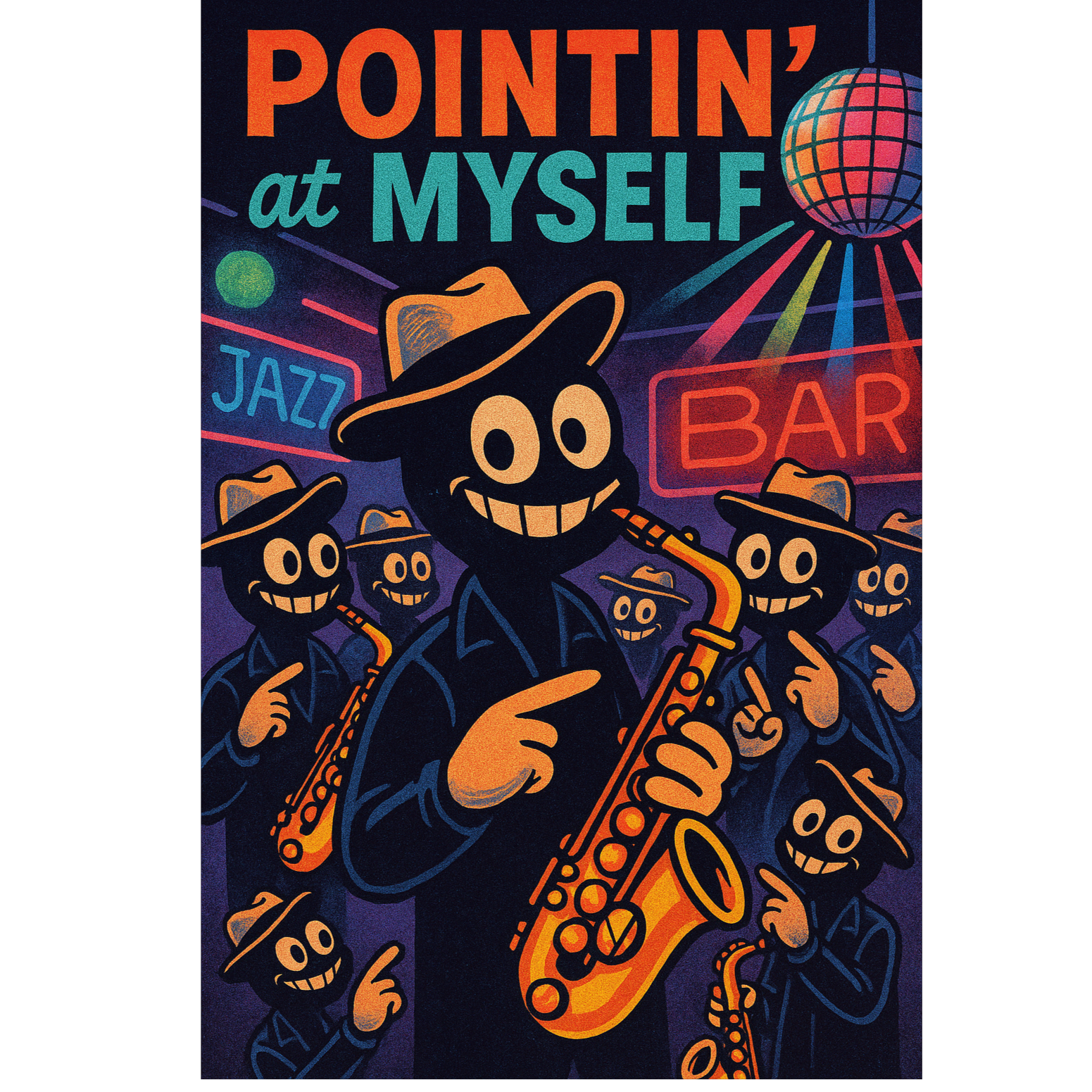 Playful funk-jazz blend with introspective lyrics, dreamy keys, quirky tempo changes and cheeky sax interludes, Mix of lo-fi beat textures and upbeat brass, The vibe should feel like overthinking in a velvet bathrobe while Rudy sneaks through the firewall with a kazoo, Think Soul Funk meets Eels meets a cartoon philosopher in therapy